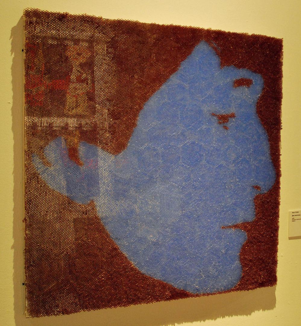 DSC_2318.jpg Надежда Эверлинг. Модели сезона. 2007. Коллаж, текстиль. DSC_2316.jpg Юрий Штапаков. Люба, Вера, Надя. 2009. Ткань, гипс. «Абак» Сергея Шутова не слишком напоминает? Впрочем, все на свете что-то напоминает. DSC_2325.jpg DSC_2326.jpg Владимир Селезнев. Девица в темнице, а коса на улице. 2009. Гипсокартон, железная решетка, коса из человеческих волос, электромотор. DSC_2351.jpg Иван Тузов. Узорочье. 2009. Холст, акрил. |