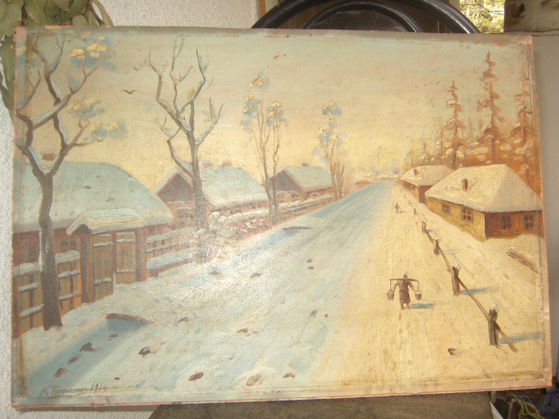 Прошу оценить картину Зимний пейзаж, опознать художника. Картон масло размеры 40 х 58 см.