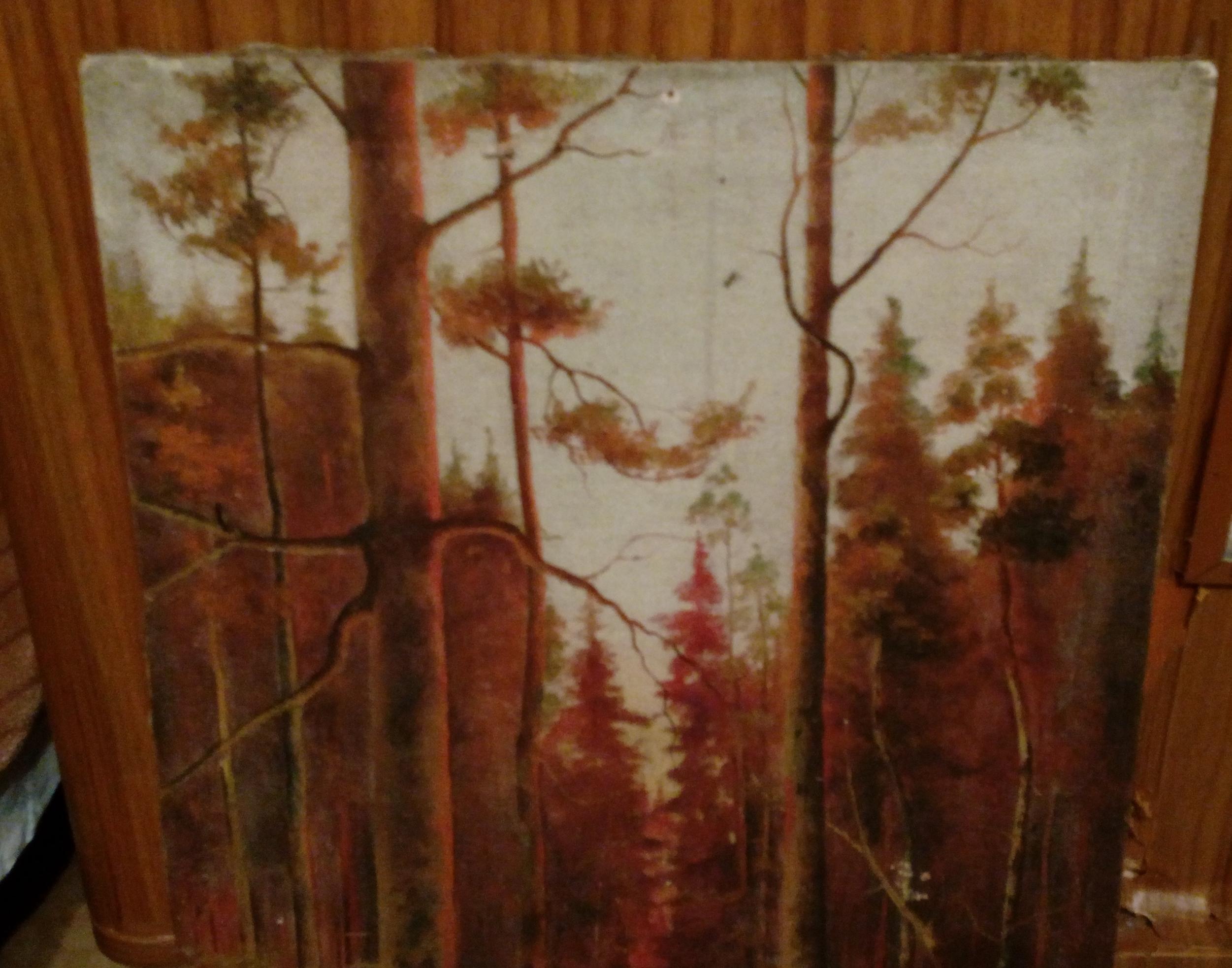 Добрый вечер! Подскажите, может кто в курсе, что за художник. Или просто любительская работа не заслуживающая внимания. Есть деффекты, сверху пару порезов небольших, и подмазка зеленой краской..Размер 70 на 44 см. Заранее спасибо за ответы!