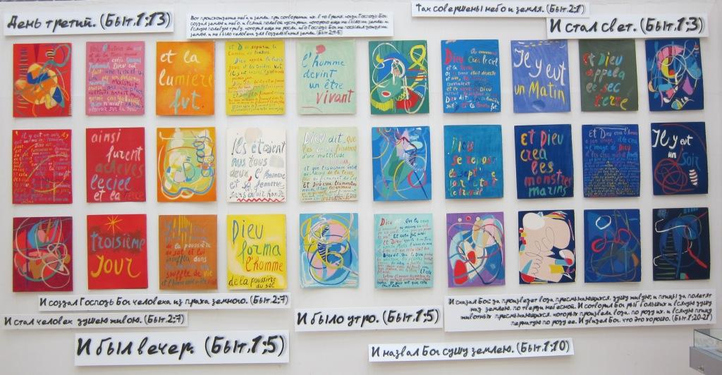 С 04 по 28 мая 2017 года Подольский Выставочный Зал 142100, Московская обл., г. Подольск пр-т Ленина д.113/62, (4967) 630154. Смысл этого произведения задуманный Ланским, именно в целостности составных его частей и расположением листов наподобие иконостаса. Каждый лист самодостаточный по отдельности, а вместе листы книги с рисунками и с текстом образуют декоративный ансамбль, наподобие панно, которое требует не просто разглядывания, а подобно иконам, медитативного восприятия. |