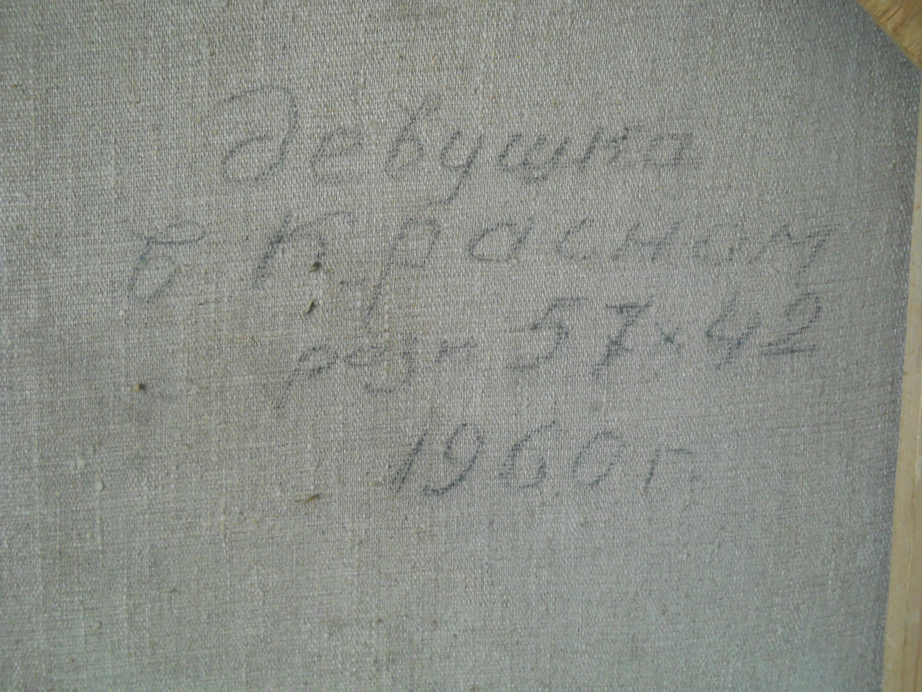 Портрет "Девушка в красном". Холст, масло, деревянная рама. 1960 год.
