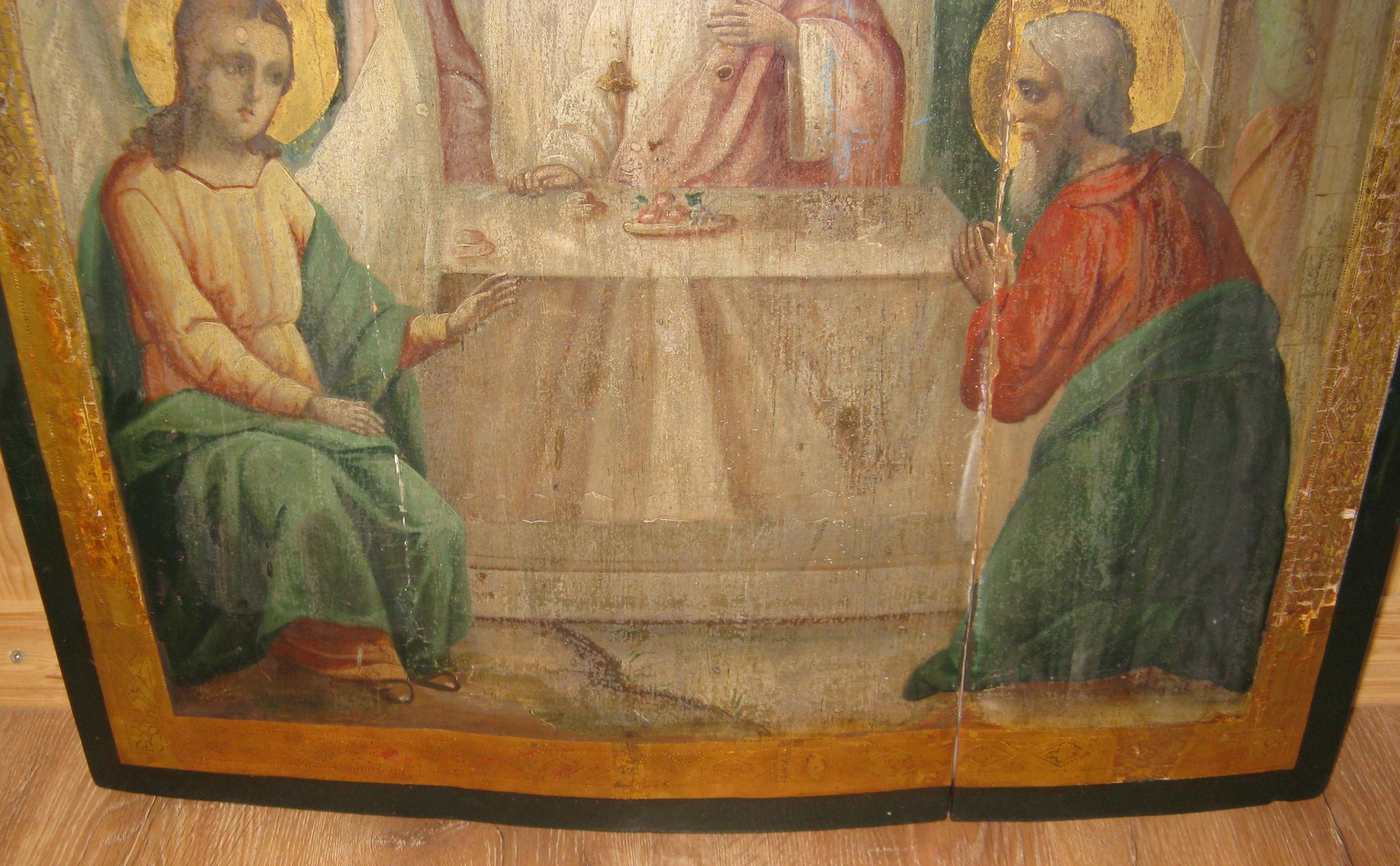 Икона Храмовая Троица Ветхозаветная Гостеприимство Авраама 19 век - сусальное золото!