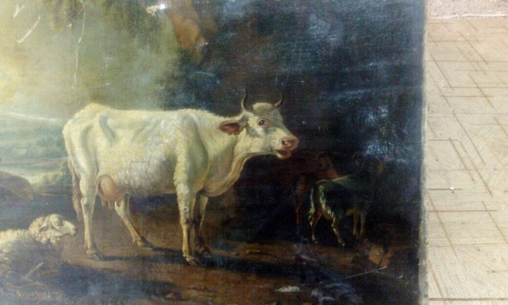 Картина хорошая. Или копия, или оригинал. Нуждается в реставрации. Но, кажется есть проблема - затемнение изображение справа. И непонятна причина этого.