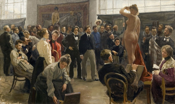 Unique is a great teamwork "Statement of nature in the workshop IE Repin Academy of Fine Arts' 1899-1903 gg. Who wrote the disciples Repin's studio to sketch BM Kustodiev. On the canvas depicted apart from Elijah Yefimovich, FA Malyavin, AP Ostroumov, IS Kulikov, Ivan Bilibin, etc. The interior of this same workshop, but in the late 1930's - the painting AP Zarubina - Workshop II Brodsky.