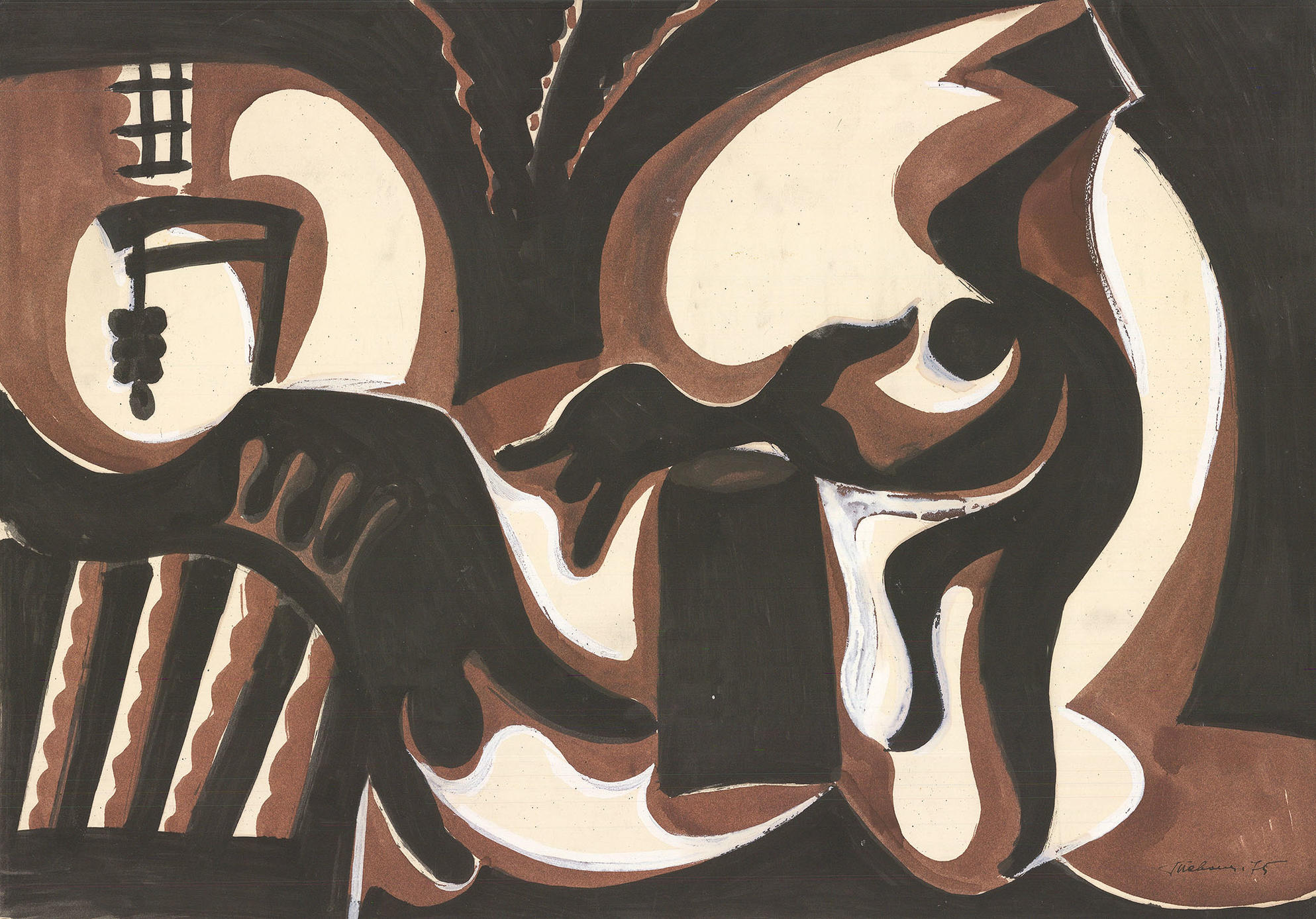 Лот №388 Тевосян Г.Т. (1932 г.р.) Композиция СССР, 1975 год. Бумага, смешанная техника. 41,4 Х 59 см. Подпись и дата справа внизу. Эстимейт: 10,000 — 15,000 Подробнее о лоте: http://antiqueauction.ru/lot/148-18-6
