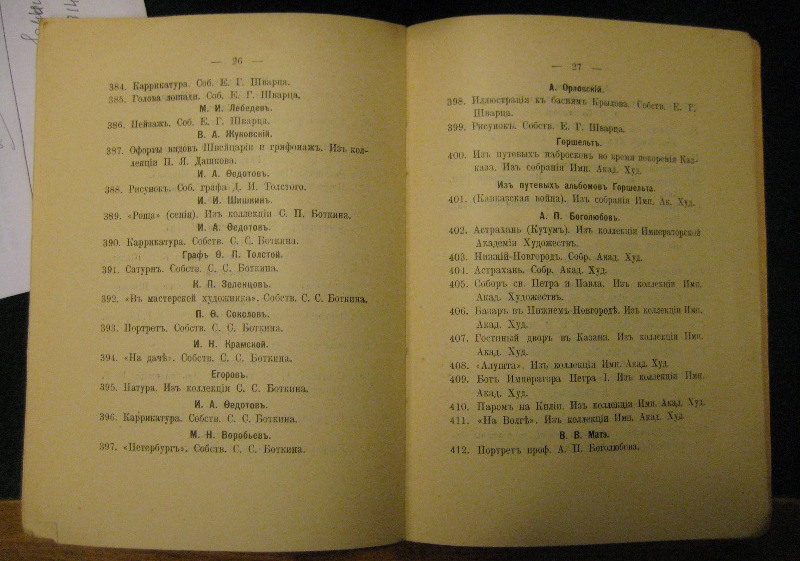 Тогда пусть будет первое попавшееся , каталог в-ки в залах ИАХ-1903. Но он немаленький и вряд ли войдёт в одно вложение Последний раз редактировалось Kaestlin; 02.04.2018 в 03:16. |