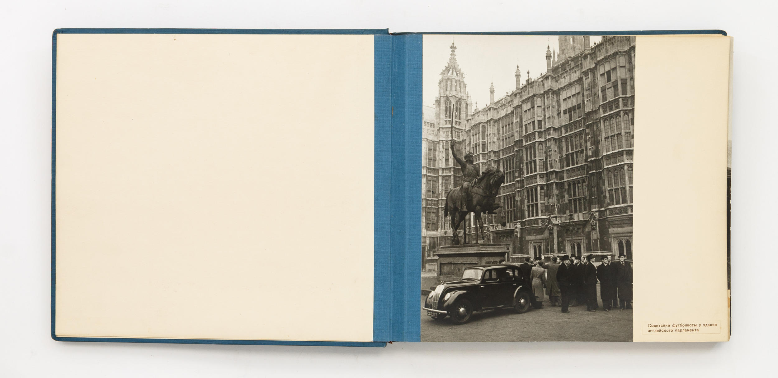 17 мая 2018, 15:00 Лот №332 Фотоальбом «Динамо в Англии». [СССР, 1945]. 39 с. фотографий разного размера, наклейки-пояснения. 29х32 см. В заказном коленкоровом переплете с наклейкой-фотографией и в подарочном футляре. Заказной подарочный альбом, изданный ограниченным тиражом, с оригинальными фотографиями, напечатанными в технике серебряно-желатиновой фотопечати. Альбом посвящен серии из четырёх товарищеских матчей, сыгранных советским футбольным клубом «Динамо» (Москва) в ноябре 1945 года с профессиональными клубами Англии, Уэльса и Шотландии. Редкость. Эстимейт: 500,000 — 600,000 Подробнее о лоте: http://antiqueauction.ru/lot/1453-1