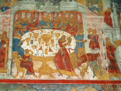 Being in town Tutaev five-seven years ago, I blurted out tour guide, that painting reminds me of the local church mural Yaroslavl churches. Joyful tour guide said that in fact the temple in Tutaev painted brigade masters of Yaroslavl province.