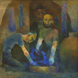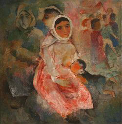 What a rich biography: In 1917, she moved to her parents in Barnaul, where joined the left-most group of artists who are looking for and approval of new forms of art (M. Kurzin, Gulyaev, later - Markova). Taught at the school branch of the Altai-studio art workshops. In the years 1920-1923 she studied at Higher Art. Not finished. Many traveled around the country. Since the mid 20-ies established itself in Central Asia: first in Tashkent, then - in Samarkand. Took active part in the creation of the Samarkand branch of the Union of Artists. In 1946 at the invitation of V. Favorsky moved to Moscow. These are two pictures "Bukharan Jews" 1930. |