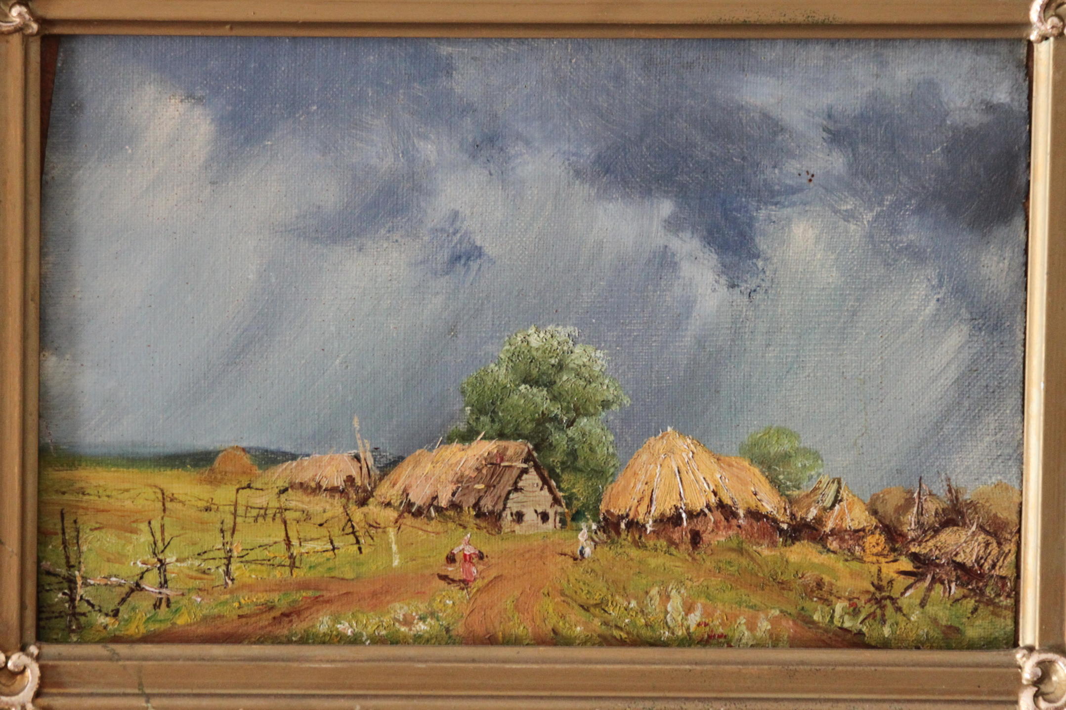Уже много лет пытаюсь найти хоть какую-то зацепку по автору, но не судьба видимо. Требуется помощь квалифицированных и всезнающих экспертов, помогите определить авторство. 38,5 cм x 29,00 см - рама 26,00 см x 17,50 cм - полотно Из своей первоначальной рамы жестоко вырезана, на сегодняшний день холст наклеен на доску и вставлен в нынешнюю раму... |