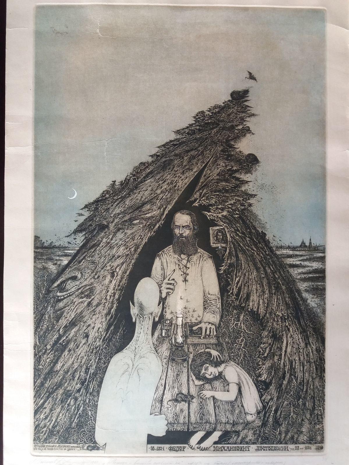 • «Легенда о Великом Инквизиторе», 1982 г. Офорт, раскраска акварелью. 40х60 см (46,5х69,5 см). 40 000 руб.