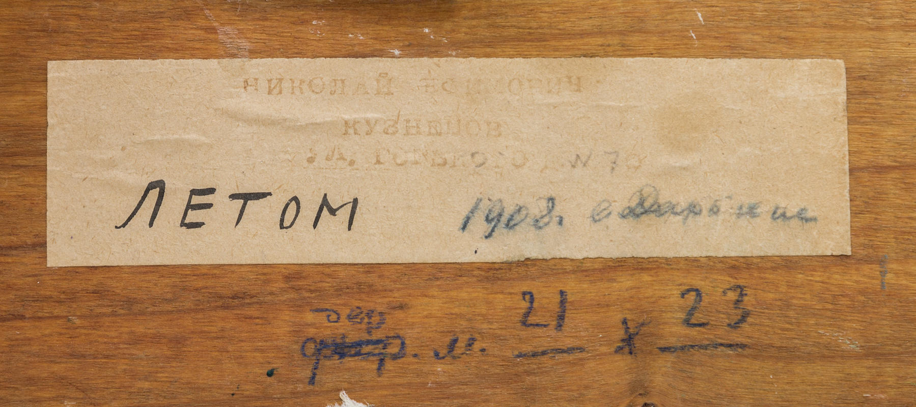 Лот №14 Кузнецов Н.Е. (1876-1970 гг) Летом Россия, 1908 год. Доска, масло. 20,8 Х 26,7 см. Подпись и дата слева внизу. Экспертиза ЦХЭ им. И. Е. Репина (2018 год, эксперт Левина Т.М.). "Экспертируемая работа относится к периоду пребывания художника в Париже, куда он поехал по совету своего учителя К.А. Коровина и занимался там в том числе в студии А. Матисса. В этюде "Летом" хорошо заметно влияние опыта фовизма: активное использование контрастов "дополнительных цветов", яркие и гибкие цветные линейные мазки <..>" Эстимейт: 180,000 — 280,000 Подробнее о лоте: https://antiqueauction.ru/lot/436-19-3