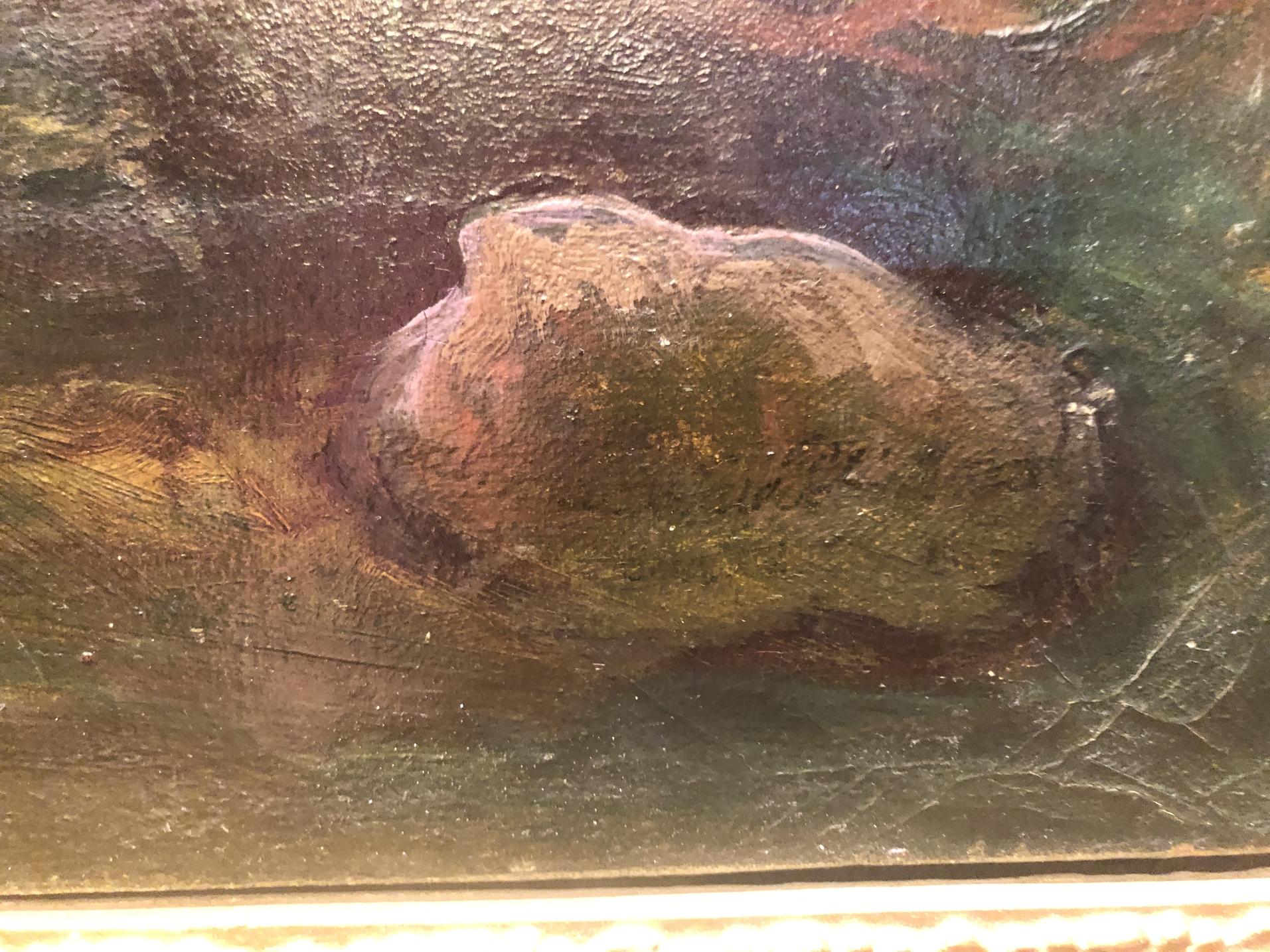 Холст масло, размер без рамы 97х64см. Предположительно: куплена в 1939г в г. Львов, автор польский художник. Подпись наполовину стерта, на обороте информации нет.