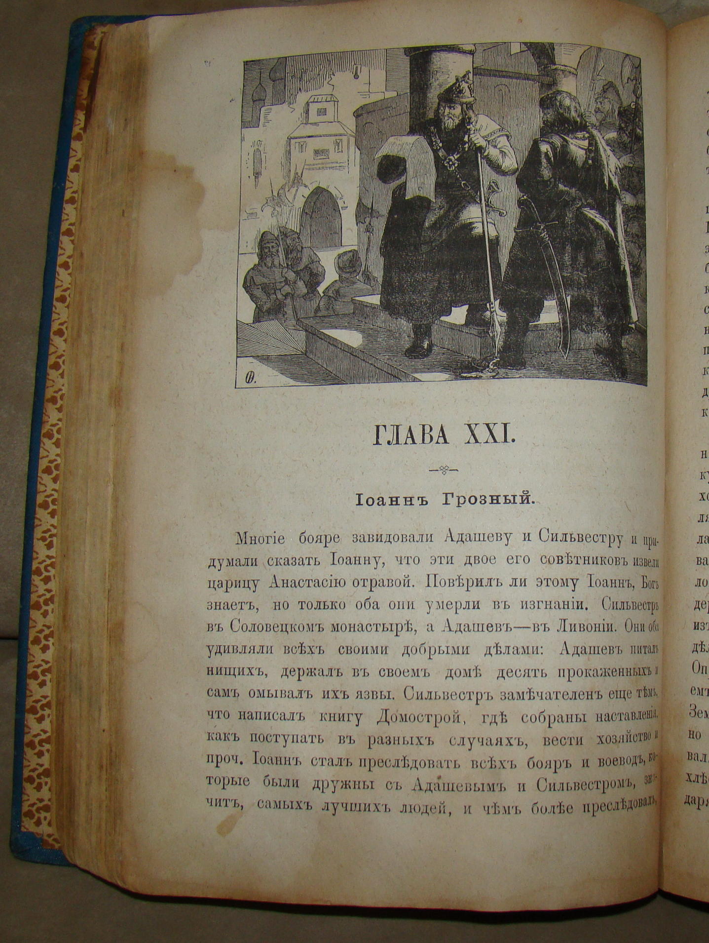 История России в рассказах для детей. 1899 год, издание М. О. Вольфа, Санкт-Петербург - Москва. Иллюстрированное издание с 52 политипажами по рисункам Б. Оппенгейма. Родной типографский переплет с золотым тиснением. Комплектный экземпляр, сохранность хорошая. Блок держится крепчайше, присутствуют временные пятна.