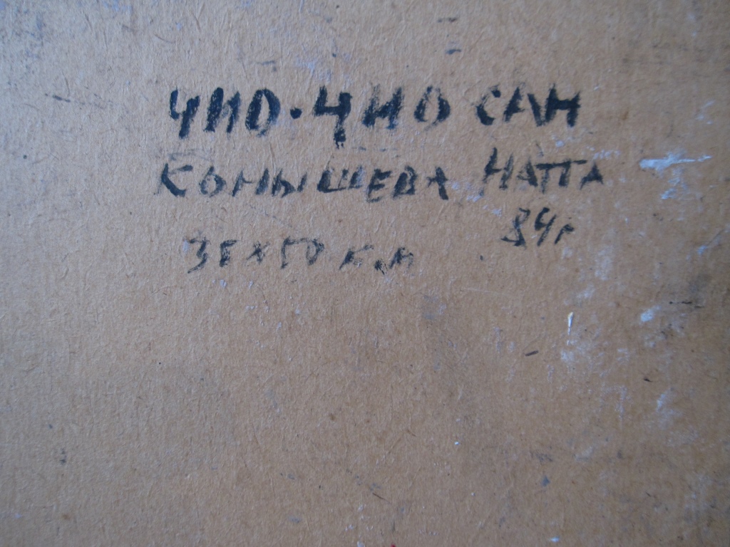 18000 рублей или рассмотрю ваше предложение Натта Ивановна Конышева (род. 9 июня 1935, Москва) — советский и российский живописец. Яркий представитель «советского авангарда». В 1959-м окончила Московский полиграфический, выставлялась в основном в компании «неофициальных» художников. Квартирные выставки, редкие полуразрешенные показы на больших площадках - Конышева влилась в струю советского послевоенного андеграунда. Участница выставок с 1965 г. В 1960-1970-е гг. работала в промышленной графике. Персональные выставки Н.И. Конышевой проходили в Москве (1974, 1987, 1988) и во Франции (1988 ). Работы Конышевой хранятся в Государственной Третьяковской галереей в Москве, Русском музее в Санкт-Петербурге, Музее наивного искусства в Ницце, Франция.