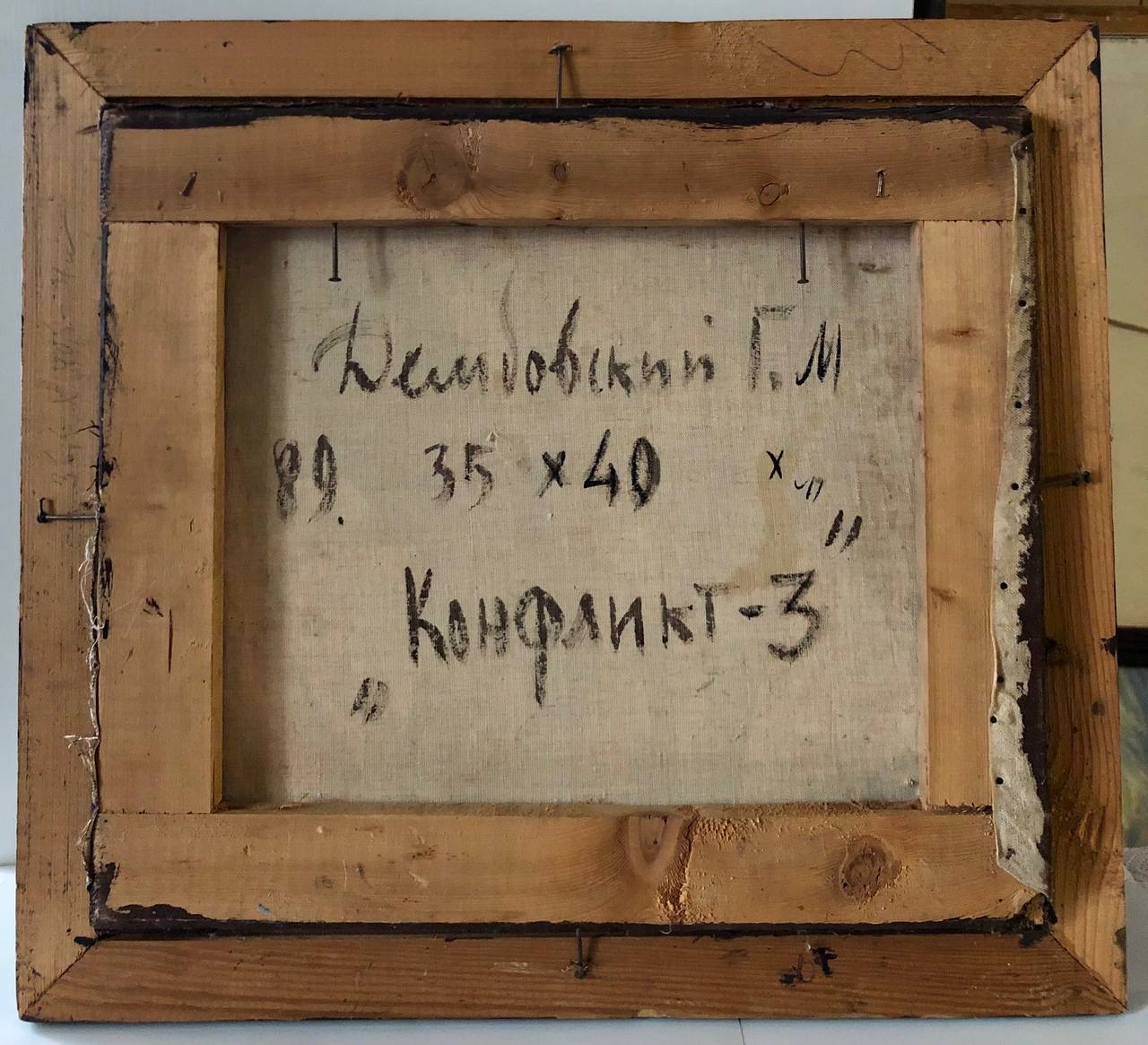 Название: "Конфликт" ("Конфликт-1", "Конфликт-2", "Конфликт-3") Художник: Дембовский Григорий Михайлович Техника: холст, масло Жанр: нэоэкспрессионизм Год создания: 1989 Размер: по подрамнику 35х40 см; по багету 45х50 см Багет: дерево Цена: 55000 р. за каждую по отдельности; 135000 р. за 3 картины. По всем вопросам, и особенно приобретения, для связи прошу использовать л/с. Все картины находятся в районе Малаховки, МО. Фото всей коллекции отправлю по почте реально заинтересованным по запросу в л/с. Дембовский Григорий Михайлович родился в Москве в 1955 г. Окончил Московское высшее художественно-промышленное училище (Строгановское) в 1978 г. Заслуженный художник РФ, Почетный Академик РАХ, Доктор Искусства, Профессор международной Академии архитектуры Григорий Дембовский глубоко изучил и продолжает изучать мировую живопись. Живопись для него не труд, а радость и удовольствие, как в процессе, так и в результате, хотя без труда, мук и ошибок не бывает настоящего произведения искусства. Художник ответственно относится к творчеству и предлагает работы, отвечающие только самым высоким критериям. В 1978 г. окончил институт и вступил в Молодежное объединение МОСХа по секции живописи. С января 1989 г. член союза художников СССР, по секции монументальная живопись. В 1990, 1991 гг. персональные выставки в ЦДХ, в 1992 г. персональная выставка в ЦДХ совместно с Ириной Орловой - Дембовской. Работы закупались Министерством культуры СССР и РСФСР, а также в частные собрания по всему миру. Участвовал во многих зарубежных выставках, включая аукцион советской живописи 1991 г. в Чикаго (США). С 1993 г. постоянно выставлялся в выставочном зале студии "Григорий Дембовский". Оформил ряд интерьеров общественных и жилых зданий, работы неоднократно экспонировались по телевидению. Постоянный участник международных выставок в Англии, Франции, Италии, Испании, Польше. Участник международной художественной Ярмарки в Цюрихе. Арт-Салона и Арт-Манежа в Москве. Студия DEMBOWSKI, Германия В 2010 участник выставки "Небо в искусстве" в Русском государственном музее в Санкт-Петербурге. В 2011 -персональная выставка в Русском музее в Санкт-Петербурге. Григорий Михайлович провел пять персональных выставок в Москве. Участник выставки-аукциона Советского искусства в Чикаго 1990 и выставки в Мадридском музее Дель Арто Контемпоранио в 1991. Международного Арт Салона в Женеве в 2008 и Биеннале "Мир воды" в Бад Брейзике (Германия). Работы находятся в Русском музее в Санкт-Петербурге, в музее современного искусства в Москве и в частных коллекциях. Г.М. Дембовкий автор многих (работ в архитектуре) монументальных произведений, римских и флорентийских мозаик, рельефов, витражей и росписей-фресок, а также дизайна интерьеров общественных и частных зданий. В декабре 2014 Григорий Дембовский принял успешное участие в международной Арт ярмарке ART MIAMI CONTEXT 2014 Выставка в филиале Русского Музея в Малаге "Сопротивление традиция и открытие" с участием картин Дембовского Г.М. 15 декабря 2017 в Германии в г.Хаген в музее ОСТХАУЗ открывается выставка "Россия сегодня" с участием картин Григория Дембовского. С 19 по 22 марта 2020 Григорий Дембовский участвует в ярмарке современного искусства Зиндельфинген-Штутгарт. "В самый разгар судьбоносных перемен в стране, на стыке 80-х и 90-х гг. Григорий Дембовский открывает в своем творчестве серию произведений, в котор