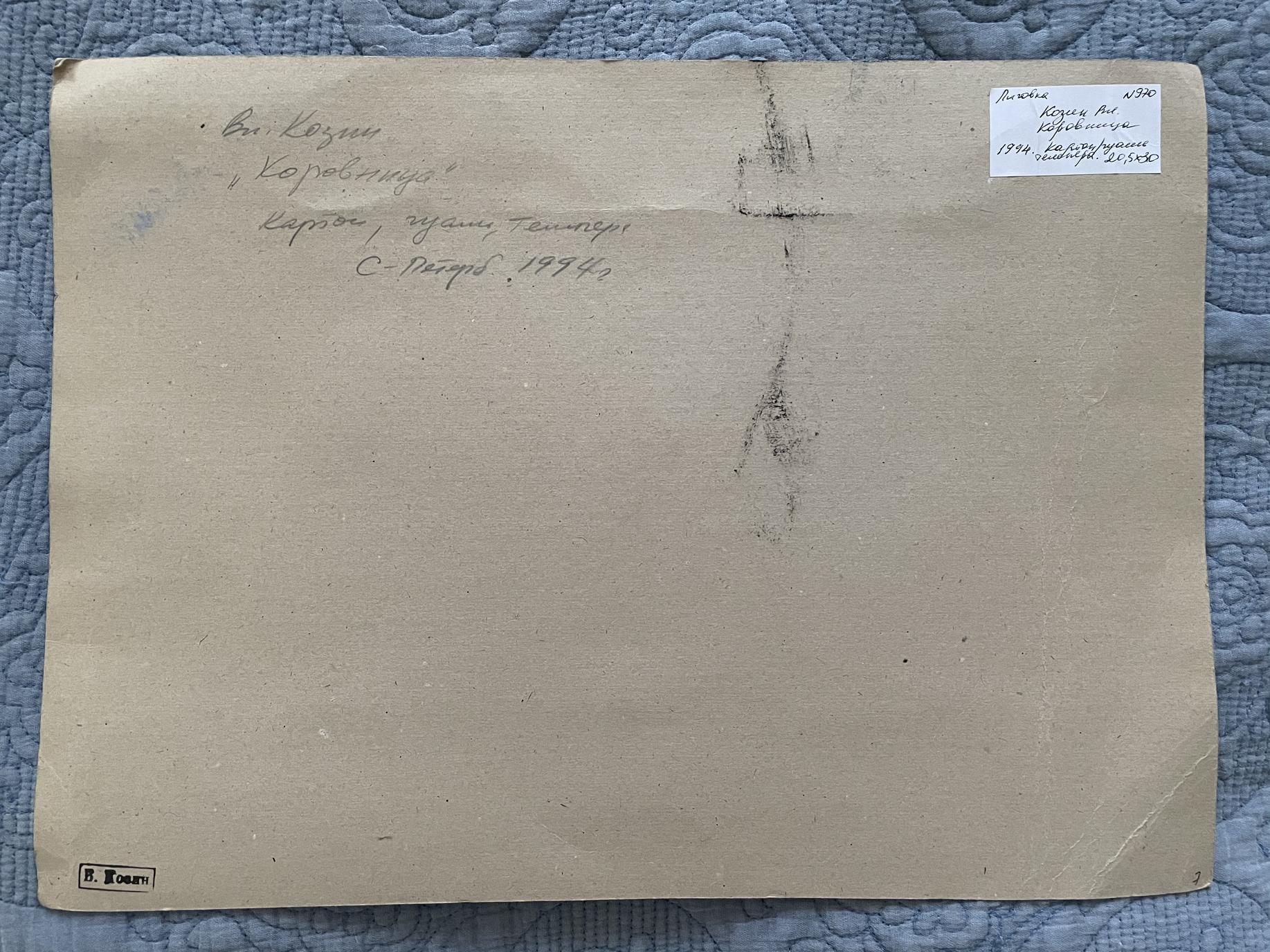 Владимир Козин: 1. «Коровница», картон/гуашь/темпера, 20 х 30 см., 1994 г.