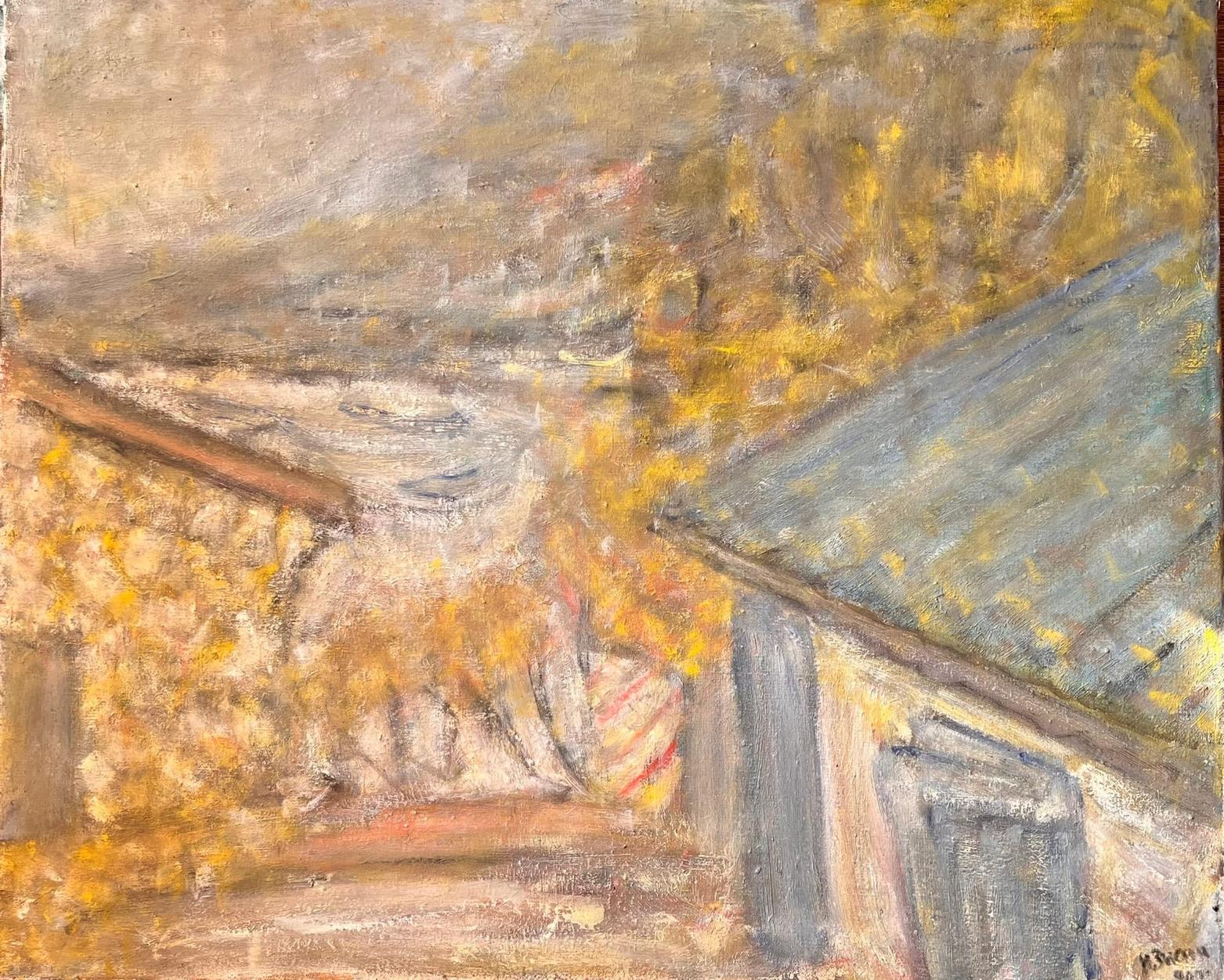 1990 год «Городок у моря» Холст Масло 90 / 110 Зисман Иосиф Натанович (1914 - 2004). Живописец-авангардист, график. Начинал художественное образование в Киевском техникуме «Культур-лиги» у Э.О. Шехтмана, учился в Московском институте повышения квалификации художников по классу живописи у профессора Б.В. Иогансона. Первая персональная выставка мастера прошла в Биробиджане в 1934 году. Член Союза художников СССР с 1947 года. Провел восемь персональных выставок. Автор пейзажей, портретов, натюрмортов, жанровых композиций. Произведения находятся в ГРМ и Коллекции современного искусства ЦВЗ «Манеж», С.-Петербург, а также в частных собраниях в России и за рубежом.