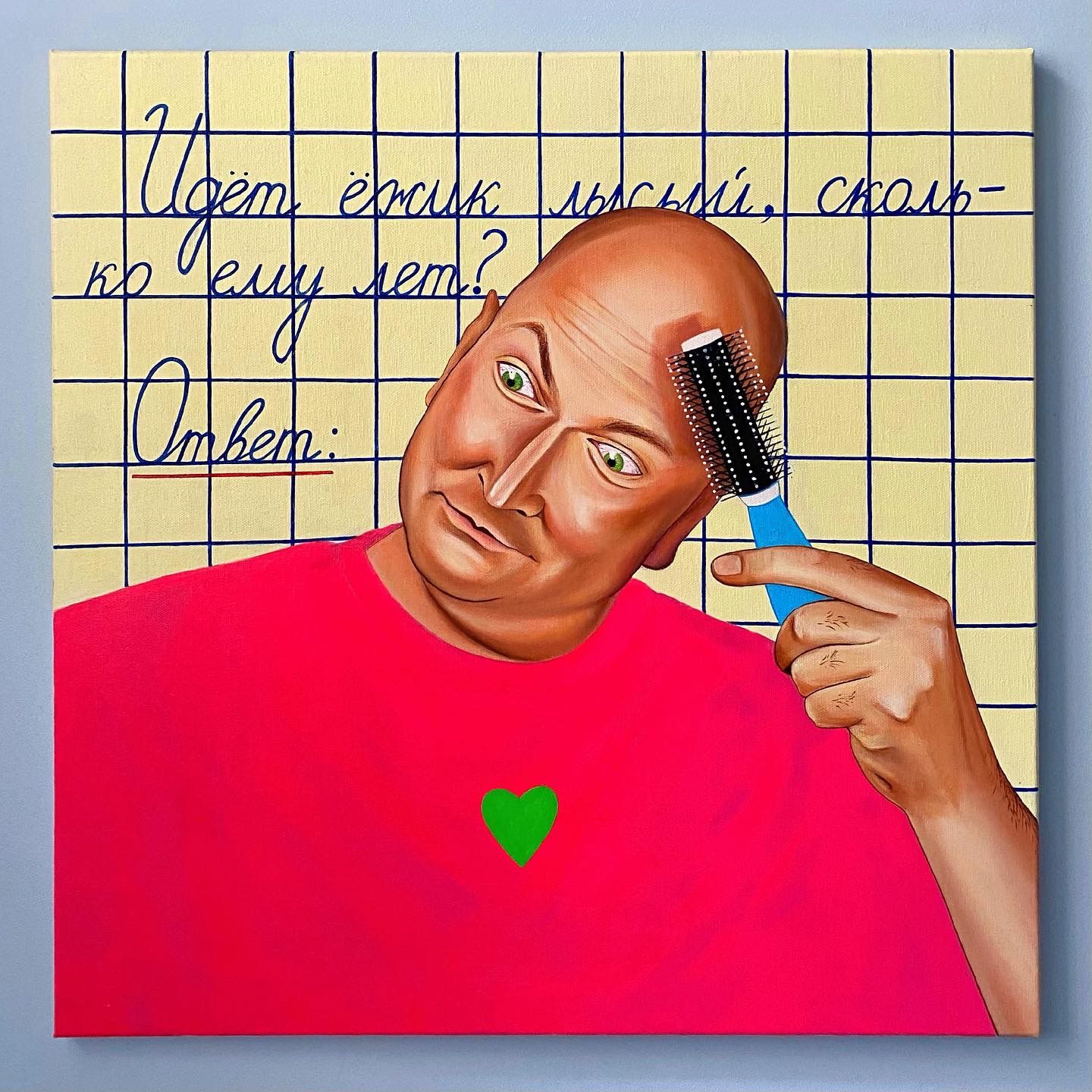 Юлия Селиверстова, «Идёт ёжик лысый, сколько ему лет?», 60 х 60 см., холст/масло, 2022 г. — 35 т р
