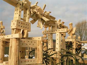 Французские архитекторы из Atelier 710 представят на фестивале проект Lenivets [lab]scape, рассчитанный на три года. В его рамках посредством методов ландшафтной архитектуры будет создаваться парк. Electroboutique — Аристарх Чернышев, Алексей Шульгин, Инна Астафьева — в своей работе развивают идею транспортной системы будущего. Их проект «Воздушный порт» — это синтез природы и современной цивилизации. Информационное табло с расписанием авиарейсов стоит в лесу. Оно постоянно обновляется, время от времени, как и положено в любом аэропорту, слышатся объявления. Возможно, в отдаленном будущем такое действительно возможно, и технические достижения человечества будут не разрушать, а дополнять природу. «Механический лес» архитектора Оскара Мадеры приводится в движение гидравлическим поршнем: де ревья в его работе совершают то, что невозможно увидеть на природе, — синхронно качаются. «Гиперболоидная градирня «Вулкан» Николая Полисского — огромная башня из лозы и веток, которая дышит светом и дымом, настоящий вулкан, притом безвредный. Возможно, в этом и заключается главная идея фестиваля — показать архитектуру частью пейзажа, а достижения науки — гармонично вплетенными в ткань природы. |
