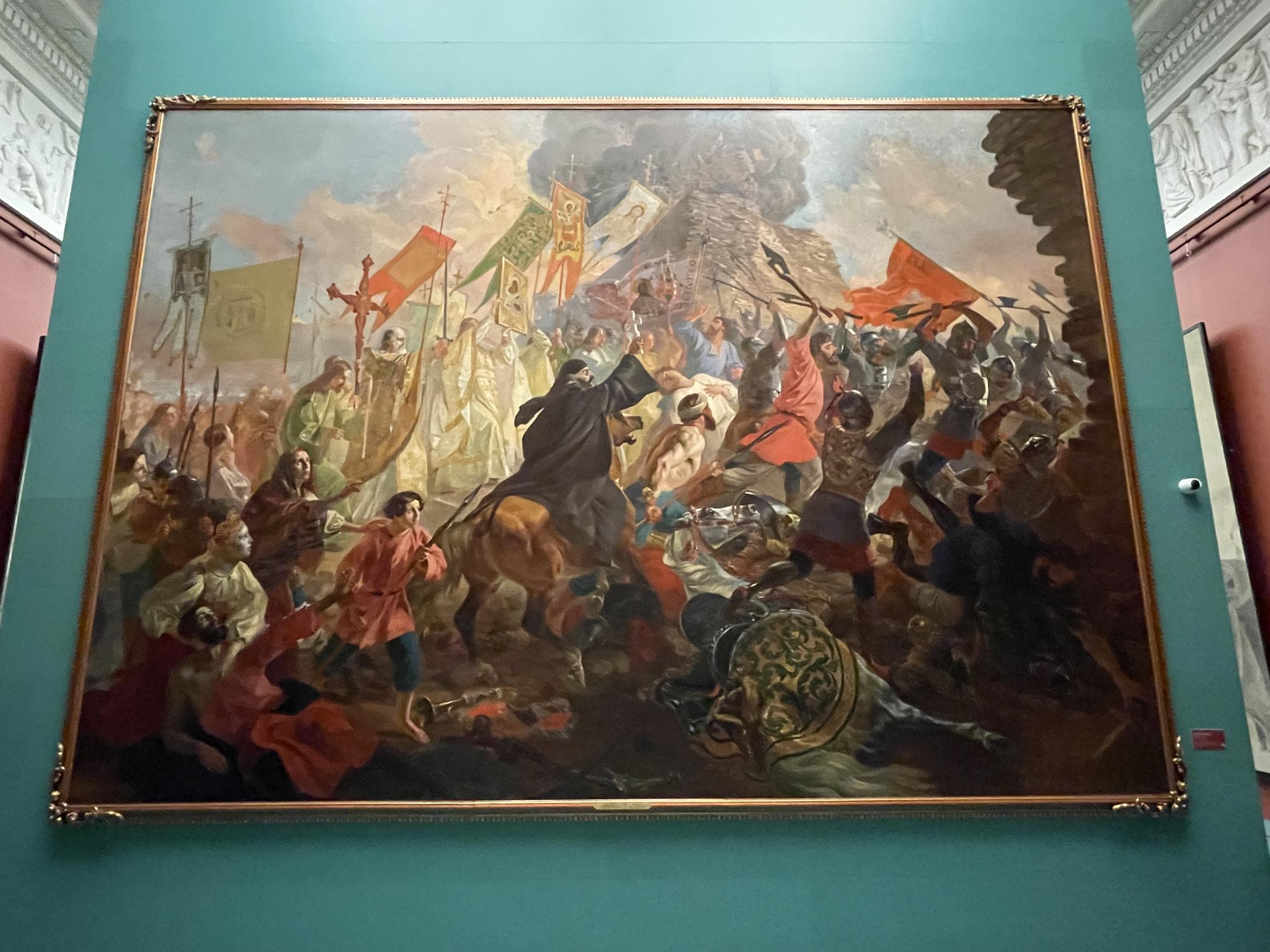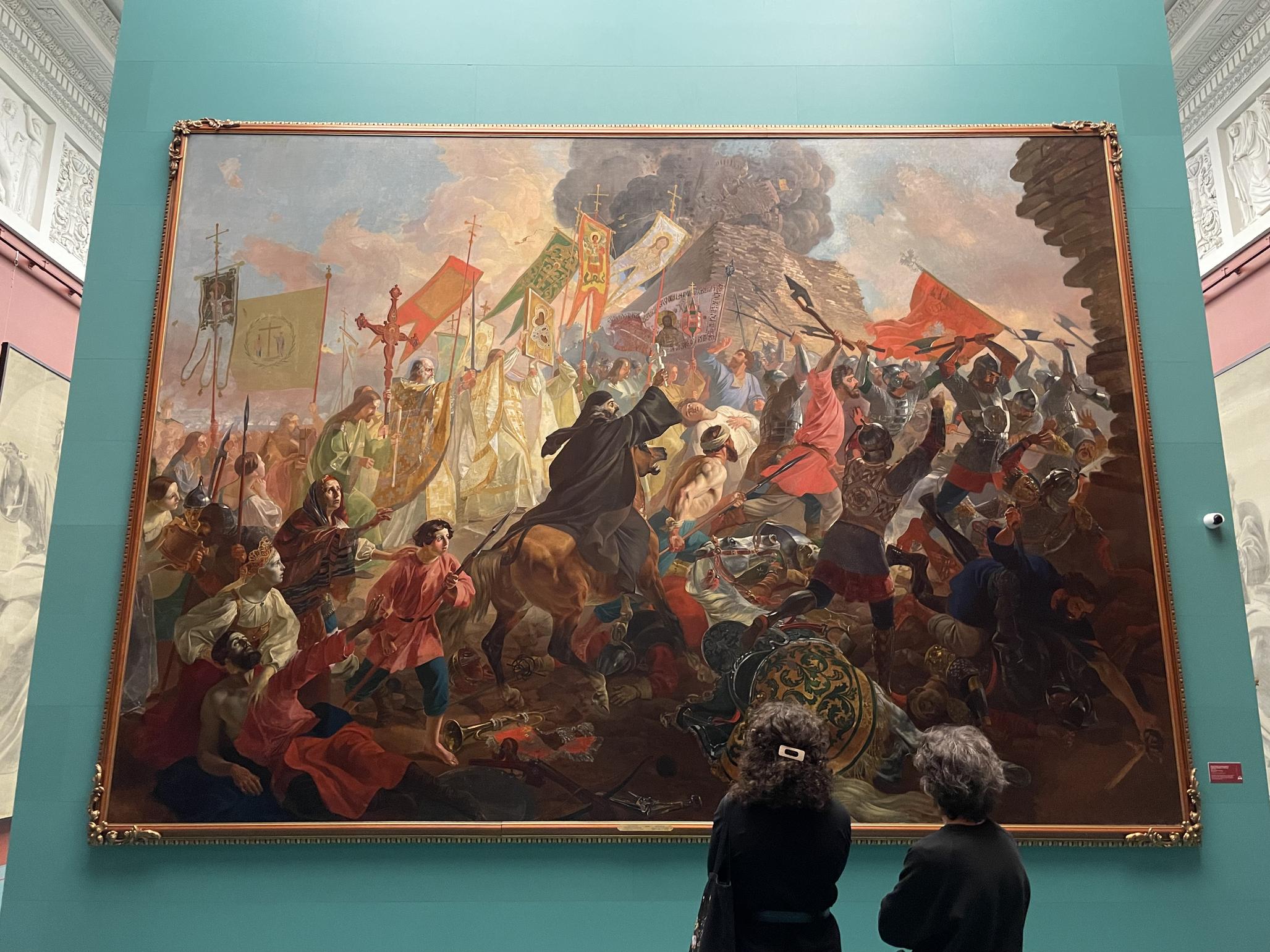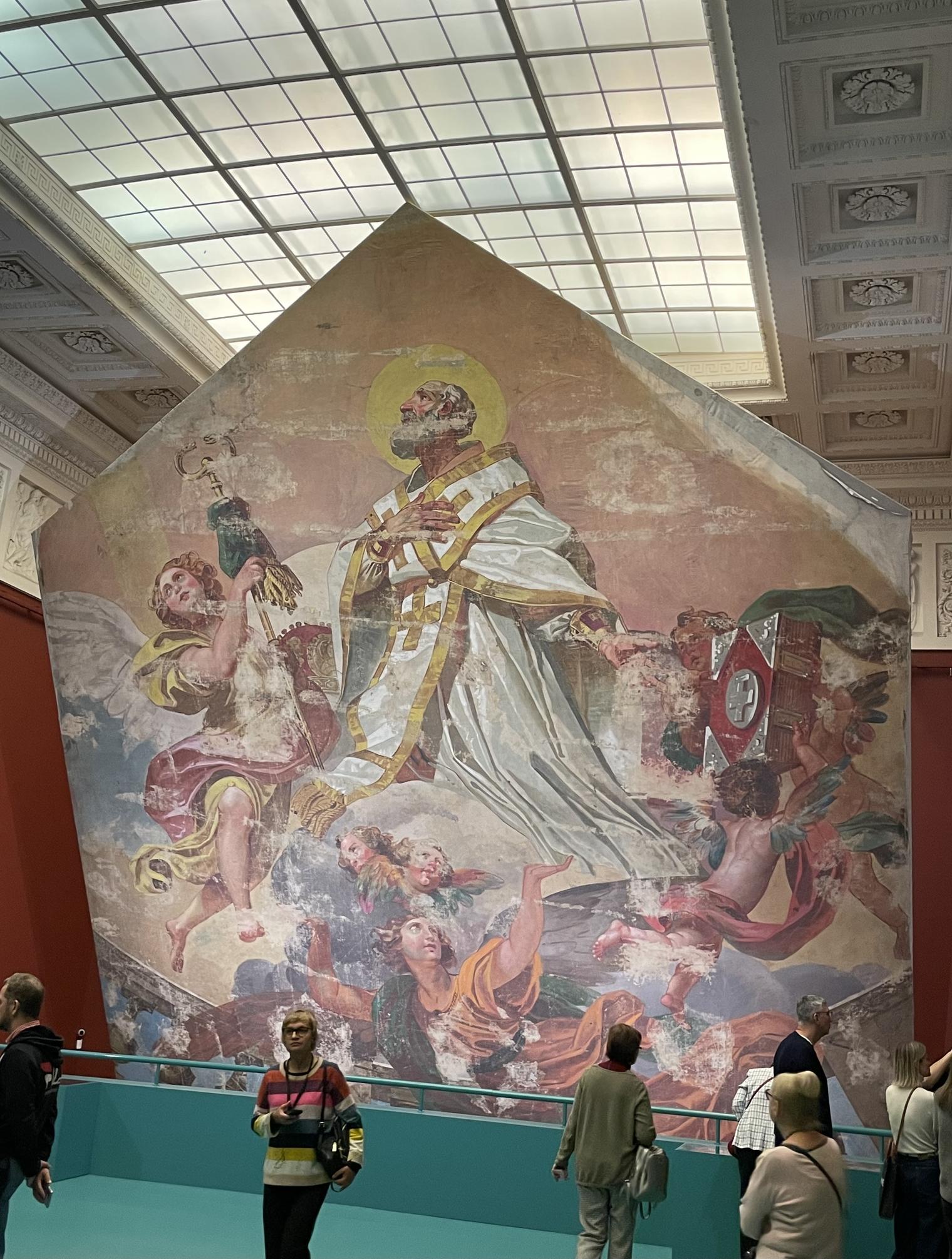 Ещё, как вариант, таким образом хотели выделить «Последний день Помпеи» и огромное полотно «Святой Николай Мерликийский с ангелами» (покажу отдельным постом). В первом случае, это выглядит так себе, и даже создает «пробку» у «Помпей» когда много людей и затрудняет просмотр (хотя все и так видели эту картину так или иначе), но во втором случае вполне логично, ибо предоставляет необходимую возвышенность чтобы рассмотреть целиком огромного «Мерликийского». Ну или просто хороший способ освоить гос. финансирование и спонсорские деньги за счёт этих всех конструкций. Кстати, мама моя сказала что-то про яичницу и «Последний день Помпеи», мол какой-то художник (видимо современник) таким образом отозвался об этой картине. В интернете ничего такого не нашел, она что-то путает? Кто знает? )))