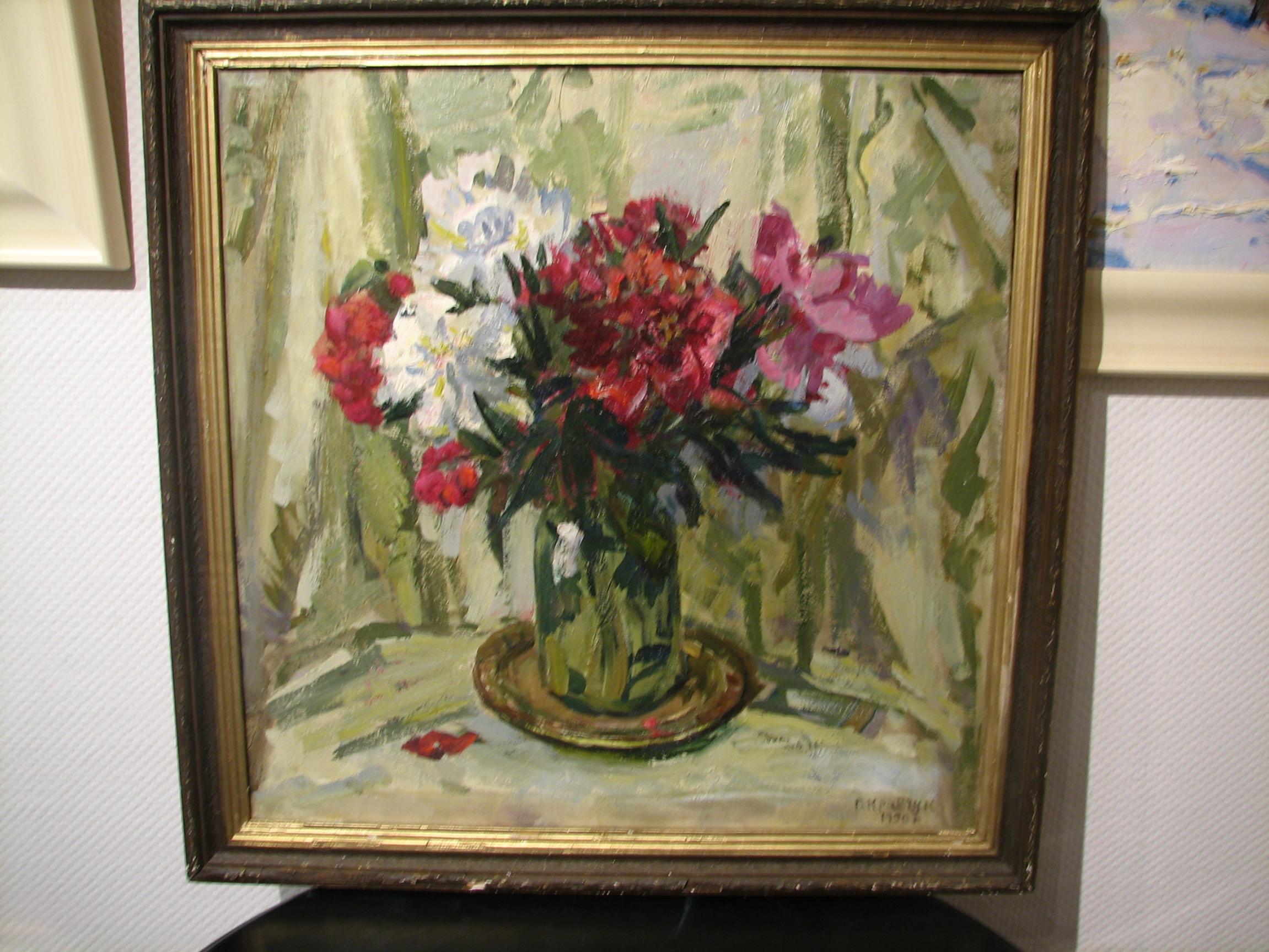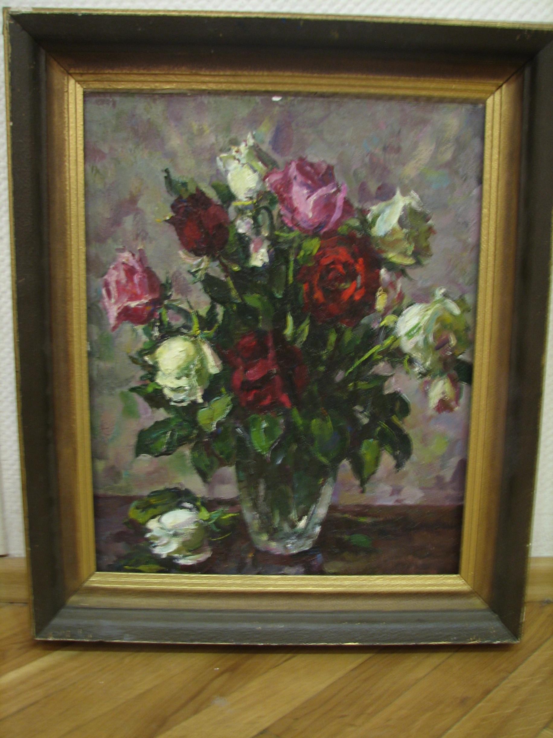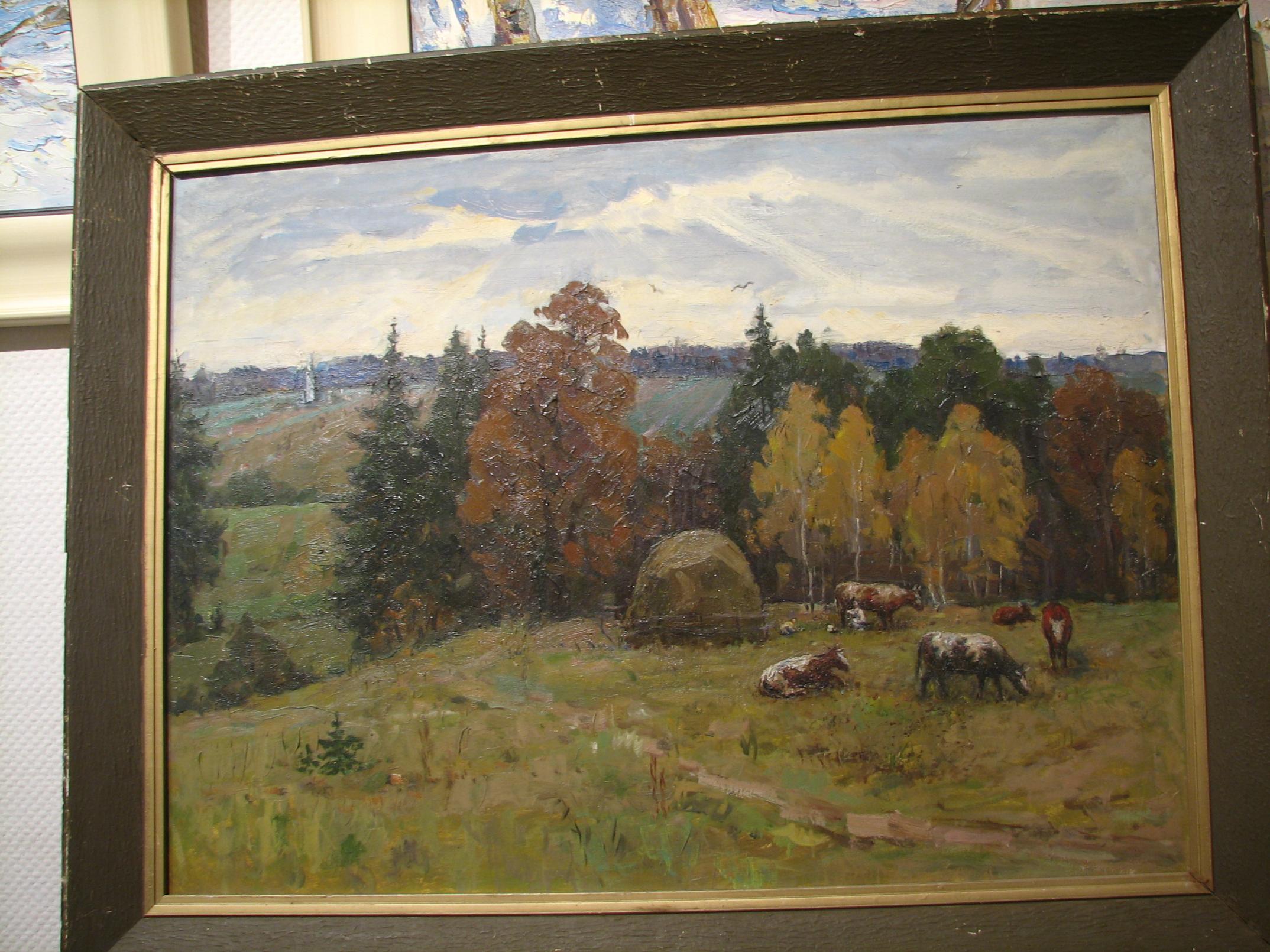 Позвонили вчера утром,и сказали,что надо организовать выставку,одного старика,в какой-то школе,и дали адрес,откуда надо забрать работ 20. открыл мне дверь,очень приветливый,добрый,интелегентный человек,просто очень плохо слышит. Когда я зашел в дом,там везде были нагромаждены работами художника. Живет он очень скромно,я бы даже сказал бедно. Я сделал много фотографий,но удалось загрузить лишь 2 фотографии,неполных. один сам художник,а вторая работа,он расказывал,что делал эту работу,с натуры,спрятавшись под фашистский танк,работа 44 года,Курская битва. Я буду ставить фотографии работ постепенно,просто надо сделать все снова.