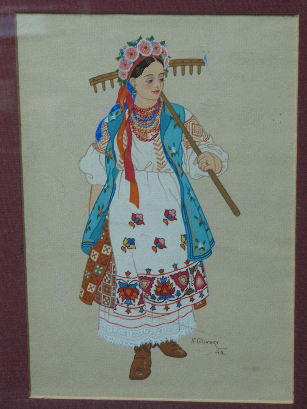 NB Glinsky - artist extraordinary destiny. "Beloemigrant, a young man settled in Bulgaria, which took quite a large diaspora of Russian immigrants, graduated from the Sofia Academy of Fine Arts, in mid-1920 began to work in the Bulgarian theaters. It was logical, because he came from a Moscow theater related family, before the revolution was going to take private lessons in painting by K. Korovin. "Russian" is very highly valued in its environment. Patriotic commitment to national aesthetics contributes to the development of "Russian style" as one of the directions of the Art Nouveau style in the works, NB Glinski until the Second World War. This corresponds to the character and talent of the artist, passionately enthusiastic ornament, looking for a decorative, capable of infinitely tat whimsical, never repeating patterns. The supreme achievement of his theatrical-decorative art were the performances on the stage of the Sofia Opera 1934-1936 period - Ballet IF Stravinsky's "Firebird, Opera, NA Rimsky-Korsakov's "Sadko" and "Boris Godunov" by MP Musorskogo. In the latter himself sang FI Chaliapin, who left Glinsko admiring review of its scenery. Sketches design of these performances the artist had brought with him in Saratov, received in 1950 right along with his family to return home. These sketches - an excellent example of Russian Art Nouveau. In Saratov, Glinsky worked a lot in the theaters. His productions "handsome men" AN Ostrowski, Duenna R. Sheridan, and others talk about professionalism, erudition, fluency secrets of the craft. SaratovArt.ru Selling the work of the artist Glinski NB "Girl with a rake, machinery paper, watercolor, pencil, size 30x20 cm, year of establishment in 1942, in the lower right corner of the signature, the work framed in a fabric mat, under glass. |