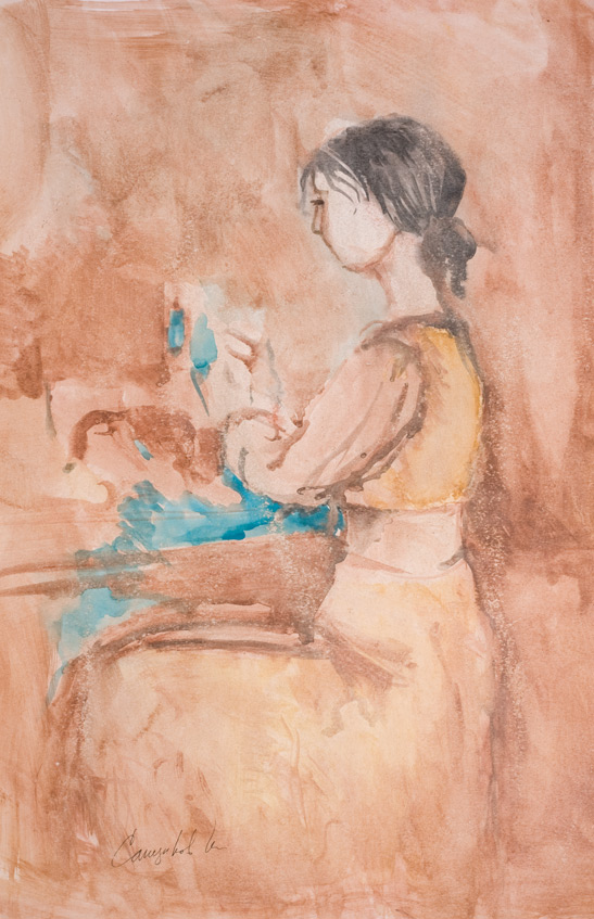 "A man with a dachshund - interestingly - otsutvie eyes, no sight nor man, nor dog, but still a feeling of friendship, affection, affection between them, and therefore work is very nice, and that's why I like it)) and the second work "The woman and the age." All very well and thought: one woman - one picture on the wall with the image of one person (perhaps this is it) - one of a peach (or any fruit) on the table - and on top of an empty second chair. allegory of loneliness. |