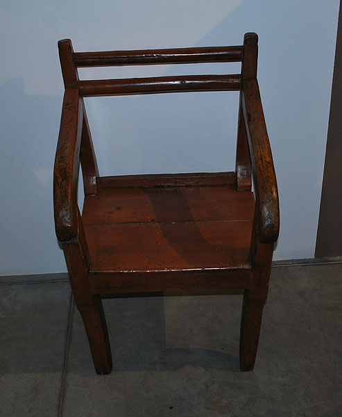 Gaining momentum now, the genre as a "culture of everyday life" - decorated (curator), look at everyday things, appear in a new light. In "PROUNI were doors, and now - the chairs. Antique and unusual adaptations XX century. It turned out that the chair - not the invention of the prehistoric and medieval. In Russia before the 16 th century were not available, and generally moved around with Peter. And before that all estates managed by benches. And only the king - the throne. Is not this the clue? To the king himself does not gets the idea? What seemed intriguing: children's stool for the pot, the bench of the trunk of the tree (north, last century) and one chair "reverse perspective". In it drew the attention of Shem - the chair does not diverges to the knees, and shrinking. Falk was.