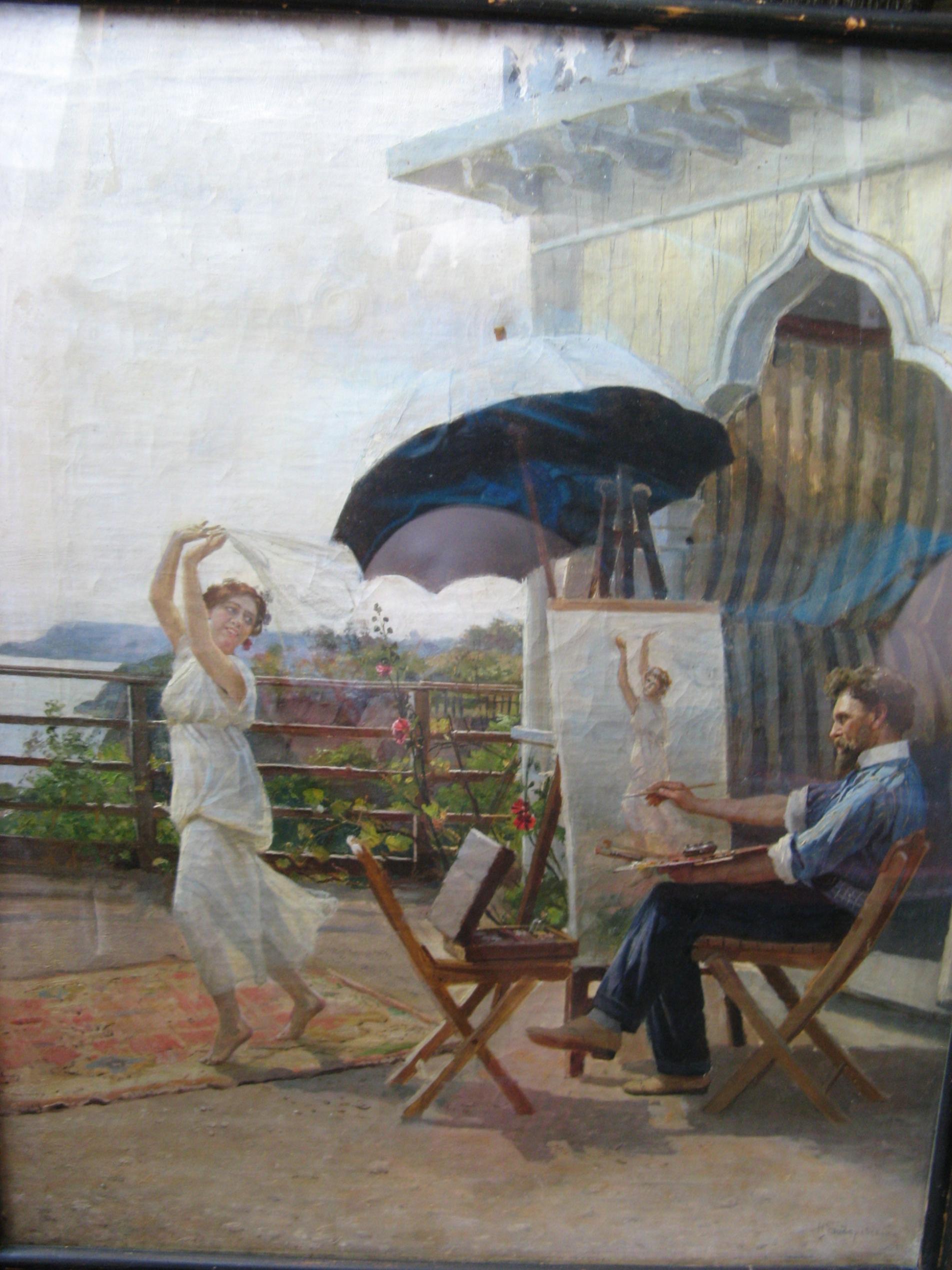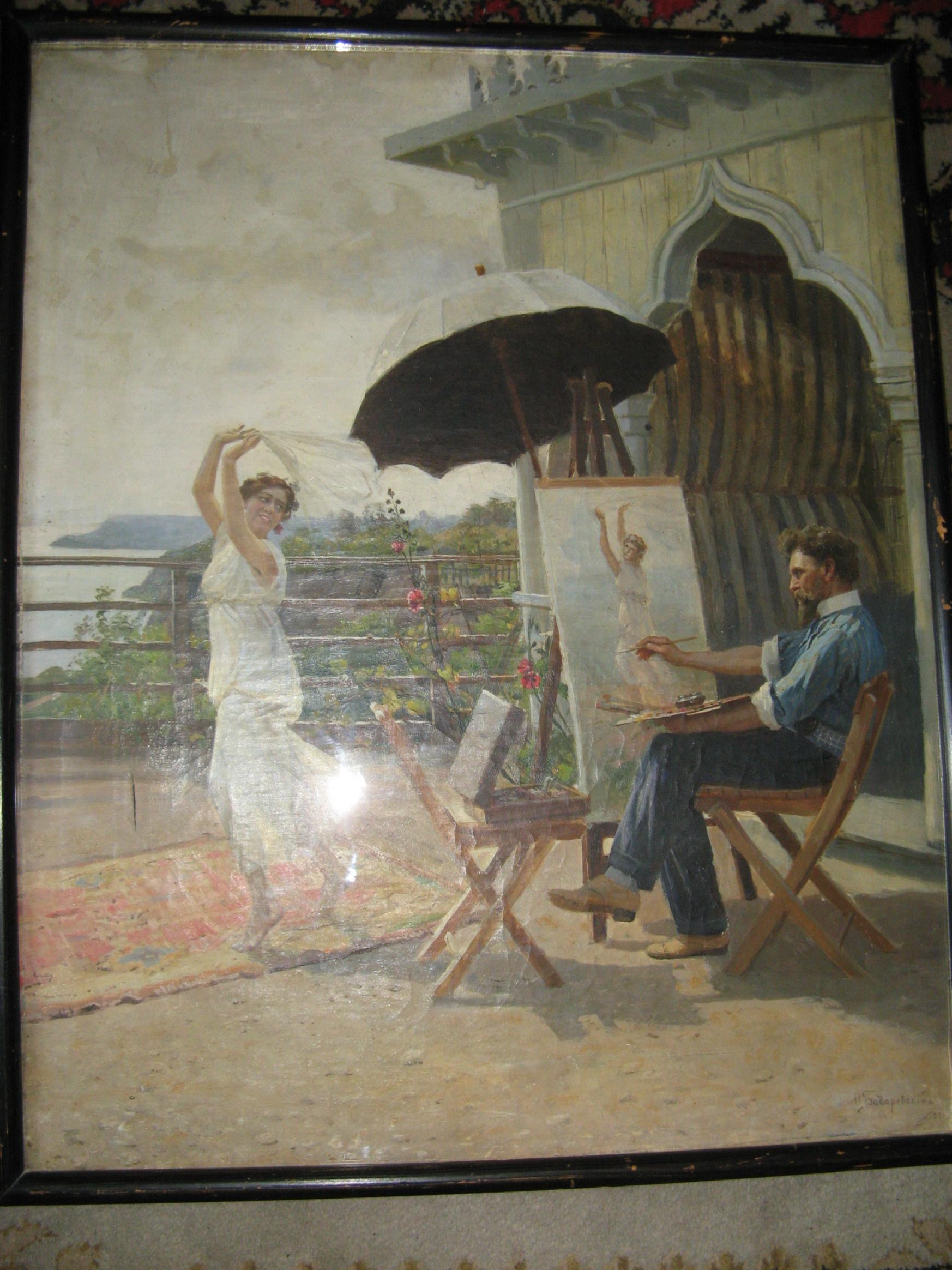 Ibid signature: "The artist at work in his studio. If painting, it would be logical to write that such and such a picture.