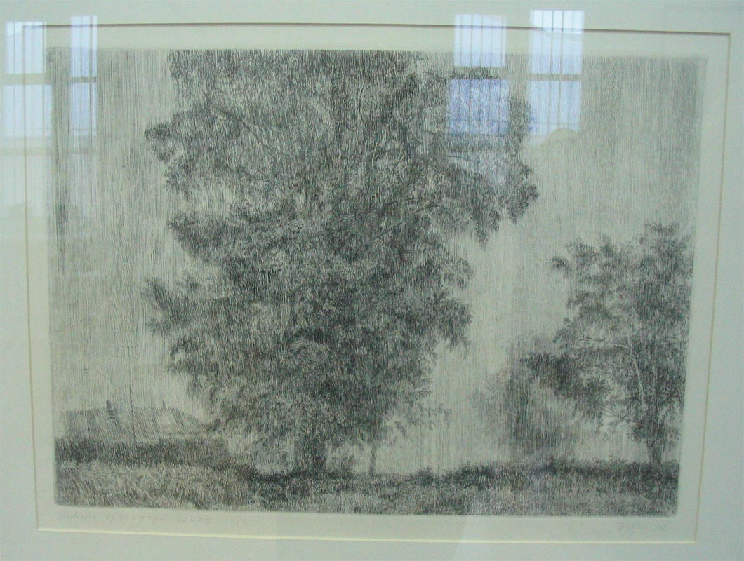 Имя Б.Ф.Французова обычно связывают с возрождением искусства офорта в России, однако этот мастер блистательно проявил себя также в других графических техниках. После его кончины была произведена опись оставшегося в мастерской наследия, и, по подведении итогов, открылась следующая грандиозная картина. Осталось 459 офортов, 156 линогравюр, 173 экслибриса (в основном ксилографии), 496 гуашей, 16 плакатов, 354 живописных произведения, 38 акварелей, 73 пастели. К этому числу следует прибавить 128 последних произведений в различных техниках, выполненных автором уже в больнице -- произведений небольшого формата, на бумаге. До сих пор не учтены рисунки художника, которых может оказаться, по предварительной оценке, до нескольких сотен. Лучшую часть наследия мастера составляют его тонкие и поэтичные офорты, изображающие русскую природу средней полосы и обнищавшую деревню советского периода. Исключительны по мастерству гуаши Б.Ф.Французова -- пейзажи, цветочные натюрморты. Живопись в его творчестве, несмотря на большое количество оставшихся произведения, носила в целом вспомогательный характер. Выполненные в больнице, перед смертью, последние произведения носят экзистенциальный характер (например, изображение воткнутых в землю вил или просфоры на мятой бумаге (все -- акварель)), в них иногда просматриваются элементы поэтики сюрреализма (окно больничной палаты как лицо человека; кувшин с бликами, напоминающими глаза; подобранные в лесу гнилушки, напоминающие американские небоскрёбы). На открытии выставки присутсвовали многочисленные гости и приглашённые. Был показан учебный фильм ВГИКА о художнике, снятый в 1966 г. К выставке был выпущен вторым изданием, расширенным и дополненным, альбом офортов Б.Ф.Французова. Выставка продлится до 27 февраля 2010 г. |