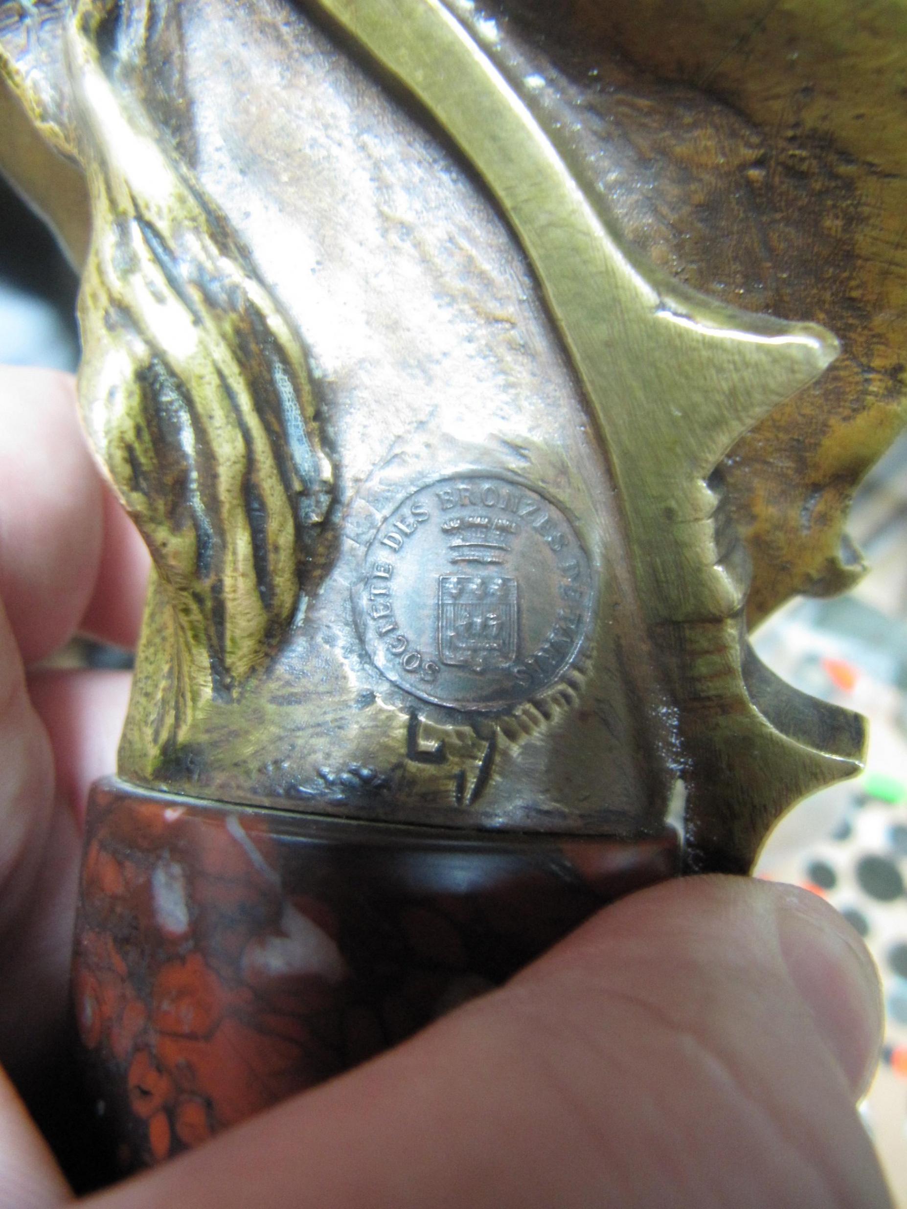 Help please attribution and to evaluate the bronze bust "DIANE", Technology: bust cast in bronze, marble or granite pedestal, height 33 cm height of the pedestal 9 cm on the back of the bust on the shoulder of the signature wizard and in the middle of the stamp with the emblem, coat of arms around the sign SOCIETE DES BRONZES DE PARIS and below the stigma of possibly similar letters L and V. Help please identify the author, the approximate year of creation and the approximate cost (if you were selling similar, may have met someone like that at foreign auctions).