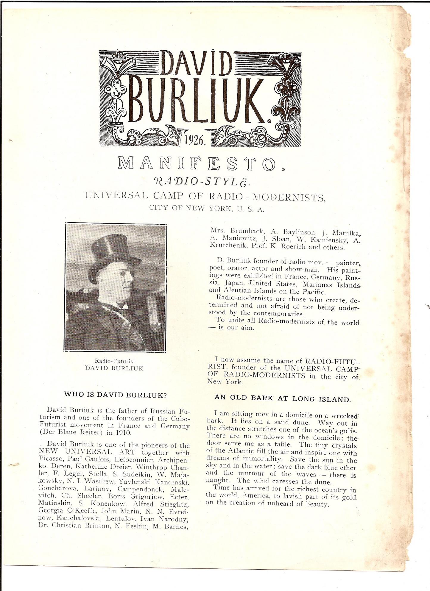 2-5. Exhibition Catalogue in the ACA Gallery in 1947/48 respectively. 3-11a. Postcard St.Mark 's Place. 3-11B. Reverse side. 4-6. Katherine Dreier "Burliuk". |