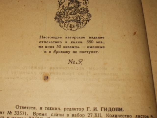 Коллекция включает несколько совершенно уникальных изданий, в том числе знаменитые "Труды Ленинградского Общества Экслибрисистов" Под ред. В.К. Лукомского с 1924 по 1928гг, а так же основополагающий труд по экслибристике "Портретно-иконографические книжные знаки" Гидони Г.И. Частное издание автора за его же счет. 1924г. Большинство изданий содержат вклейки - подлинные экслибрисы (гравюры на дереве). Преимущественно на русском языке, но есть и на французском и шведском. Прошу обращатся лишь тем библиофилам или букинистам, у кого есть серьезный интерес приобрести эти издания. Тогда составлю подробный список и перефотографирую. Цену обсудим. |