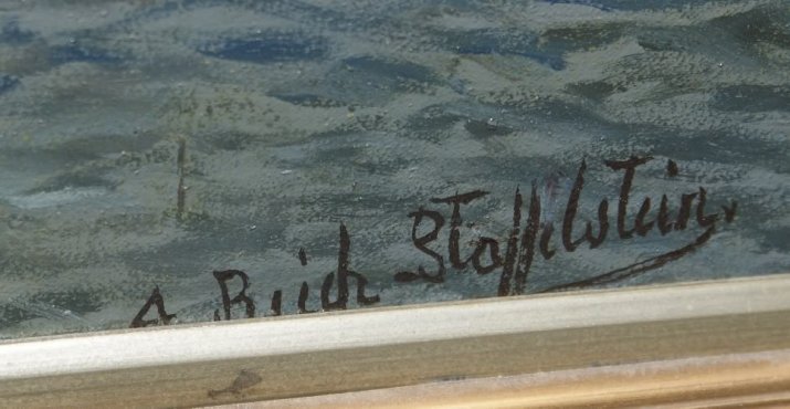 Hello, help me to attribute the picture, inherited from my grandmother, I think was brought from Europe, dated 1916 year, the signature is not very clear like A. Rudi S Tallilslin and about what may be its cost 120h70sm size, painted in oil.