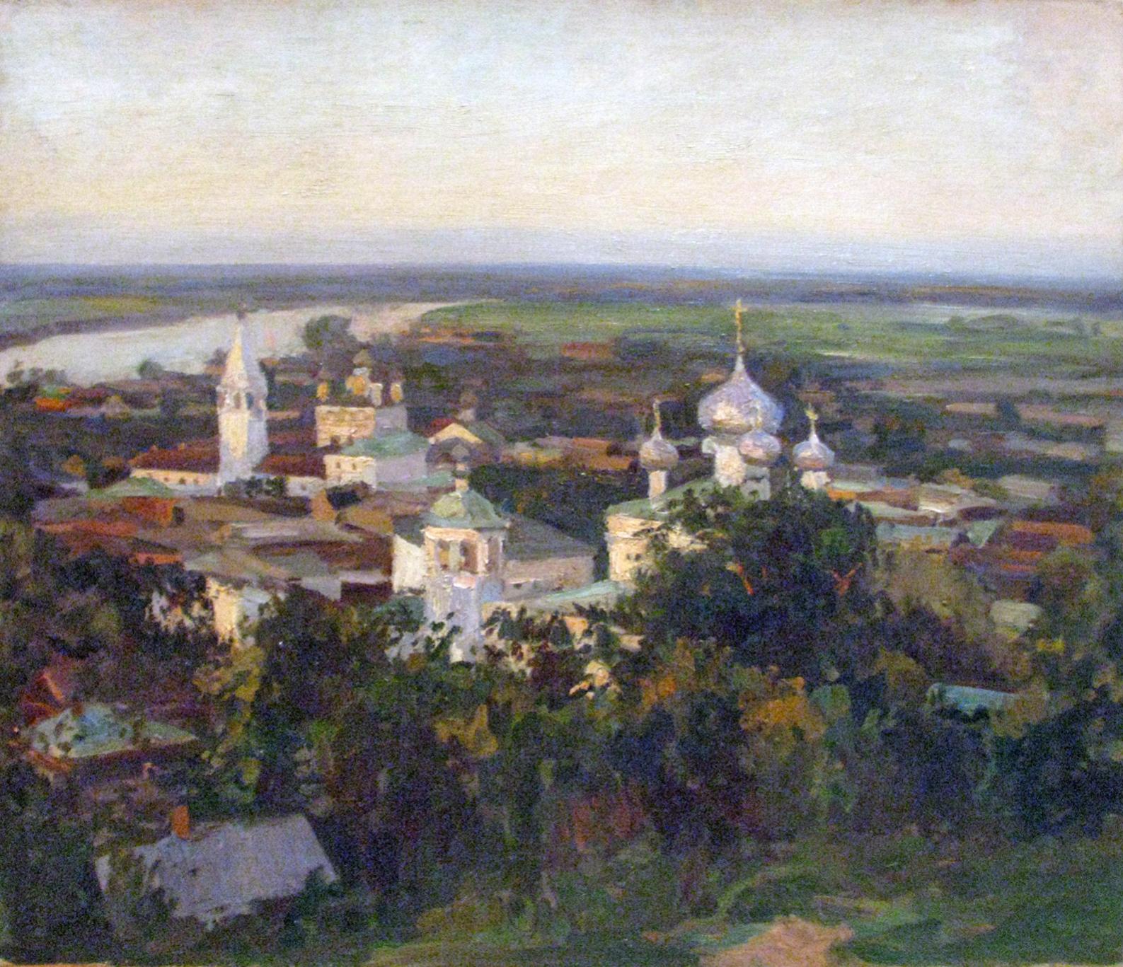 Добрый день. Никак не могу опознать город на этюде М. Аладжалова. Сначала думал, что Юрьевец на Волге, но ряд деталей не совпадает. Может кто из знатоков русской архитектуры поможет???
