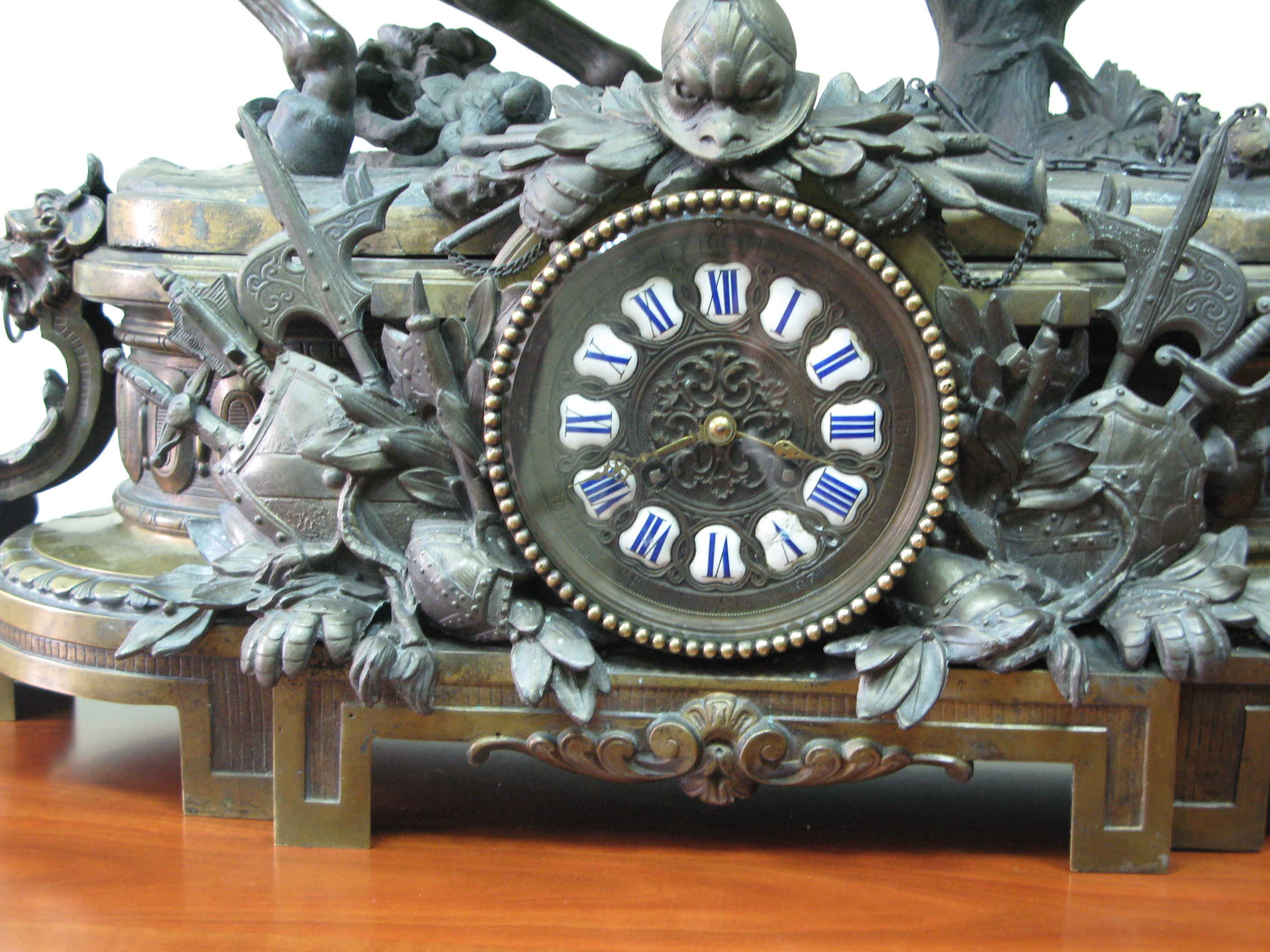 Часы каминные с конным рыцарем Материал: бронза Размеры: длина - 70 см высота - 63 см. Вес около 15 кг. Часы на ходу, с боем. Интерес представляют: страна происхождения, время создания, проризводитель и стоимость этой продукции. |
