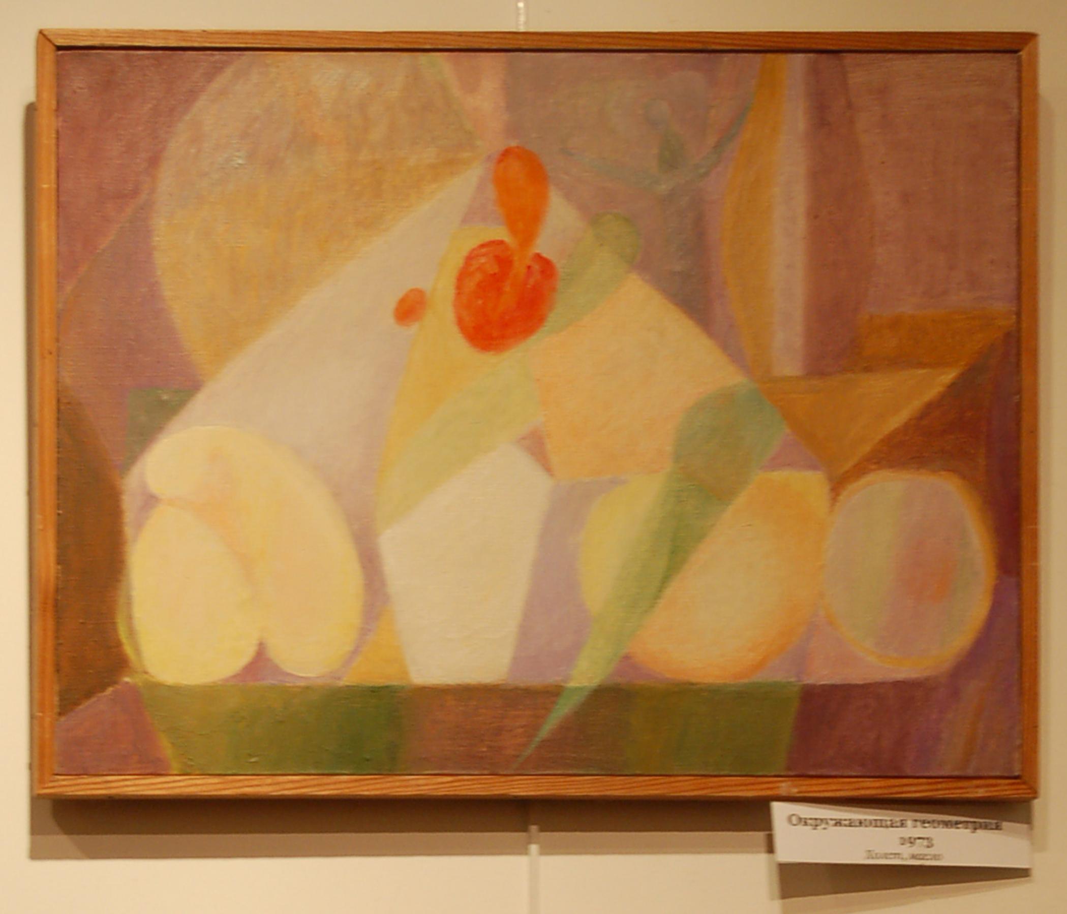 4 - Сосуды 1960-е холст/масло 5 - Щукино 1961 Бумага/акварель 6 - Дома и деревья нач 1960х Бумага/акварель 7 - Портрет Оли 1968 холст/масло 8,9 - Окружающая геометрия 1973 холст/масло 10 - Летящий храм. Природное пространство 1970-е Бумага/ масляная пастель, цв. карандаши