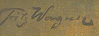 A fairly well-known German artist Fritz Wagner (Fritz Wagner, 1896 - 1939), one can say who specialized in images of lovers of good wine (most often - for some reason the monks), who introduced them into fashion and who had a lot of imitators. Unfortunately, the signature on your picture - not his. Do you - or a copy, or "work reasons".