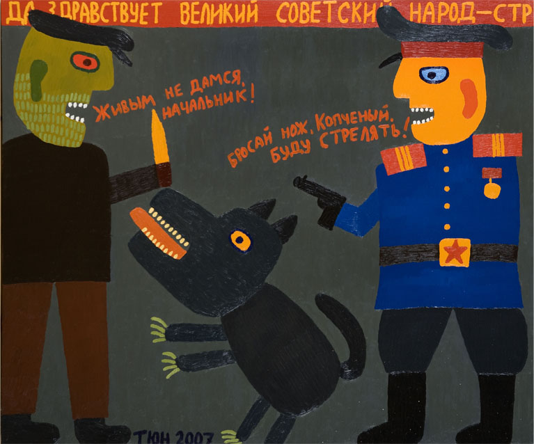 The genius of the land Lipetsk, artist and bookseller Born in 1963 in the city of Lipetsk. He graduated from engineering school. From 1983 to 1989 he worked in the Drama Theatre named after Tolstoy machinist scene. From 1991 to 2006 worked as a book business. The first paintings relate to 1993. Website of the artist: http://sabakae.narod.ru/index.html It's funny, naive, but there is something ... Yu Buy now Tatyanin "Horses, bitch, where are you?" |