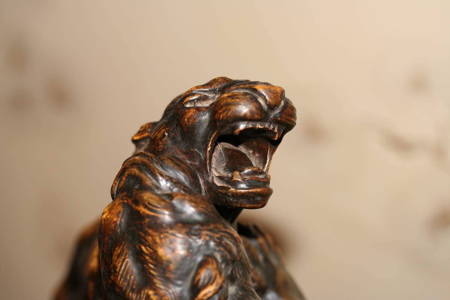Дерущиеся пантеры, высота 28 см, основание 21х27см, терракота.