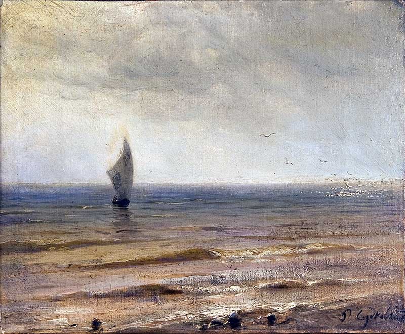 Р. Судковский. "Берег моря". Небольшой - 27х32 cm. x., м. Приб. 1880. С положительным заключением ГТГ от 04.03.1994.(филькина грамота, но настоящая, кто помнит 94-й)))) Нового заключения оттуда пока не будет.