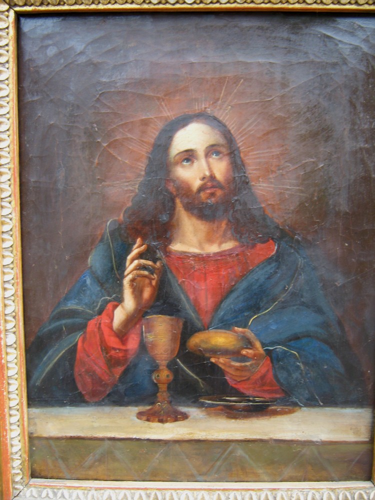 У Вас - копия картины итальянского (флорентийского) художника Карло Дольчи (Carlo Dolci, 1616 - 1686) "Христос благословляет хлеб и вино". Оригинал - в коллекции маркизов Экзетер, Бурли, Великобритания (collection of the Marquis of Exeter, Burleigh, Great Britain).