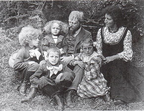 Photo of family Giacometti: Alberto leftmost front of him - Diego Bruno, Giovanni Papa, sister and mother Ottila Annette.
