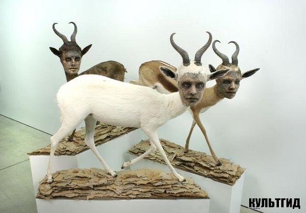 Contemporary artist Kate Clark (Kate Clark) in the sculptures synthesizes human and animal, trying to prove that despite the existence of an enlightened man of wild origin. Kate leaves visible seams on the sculptures, recalling that the exotic and the wild have been destroyed for the sake of a gentle and noble creatures.
