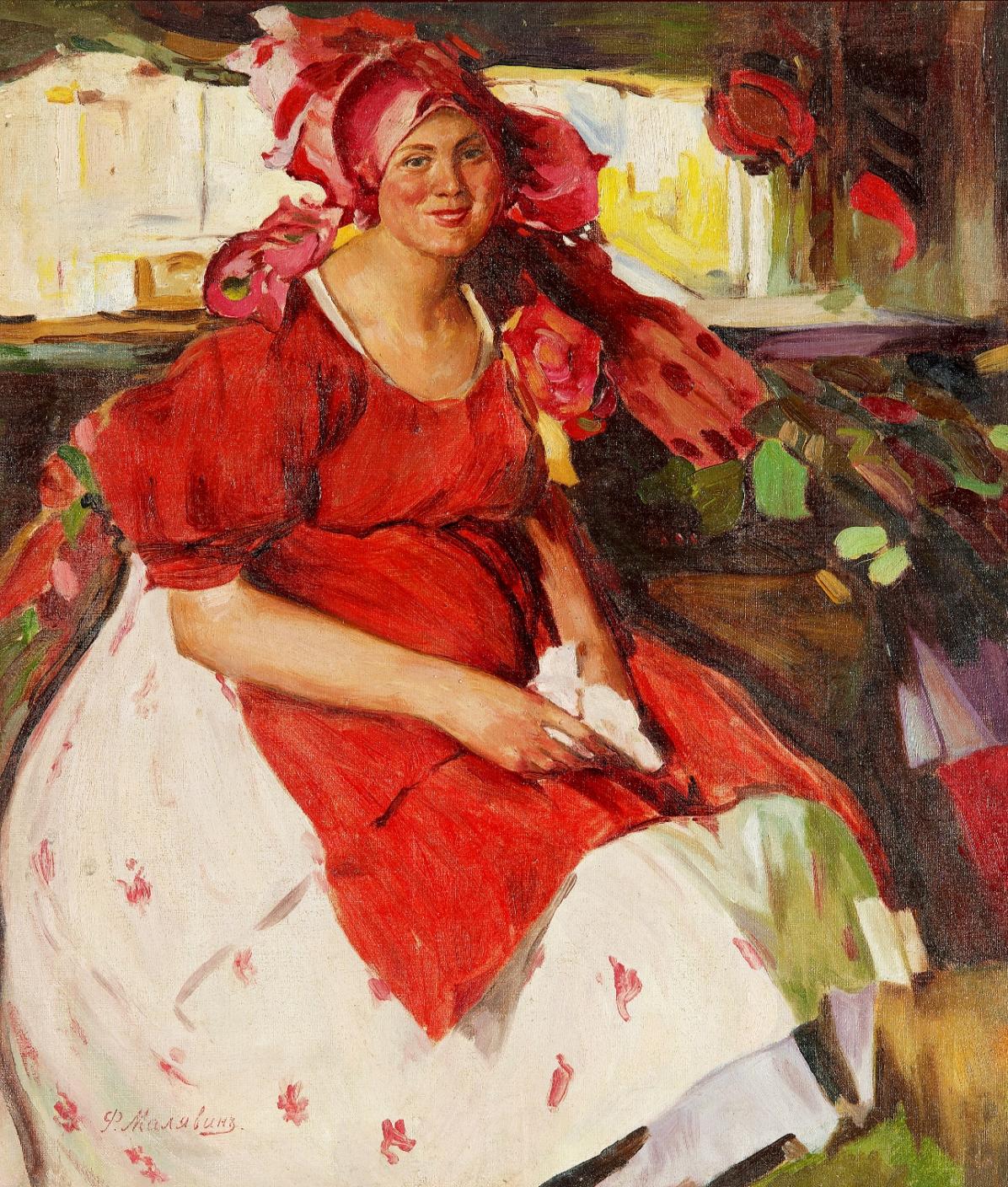 Она не похожа ни на Архипова, ни на Малявина. Образ "не архиповский" (шея написана как у итальянки, все движение светски-изящно, он так не делал.И простовато написан фон. А Малявин мне всегда казался трагичным... (?)