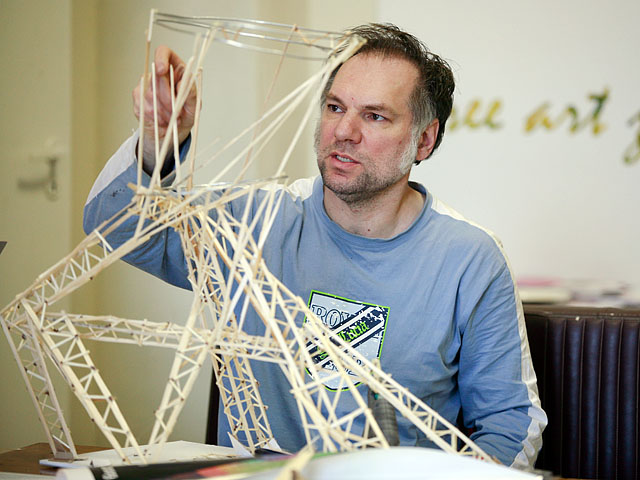 - That will have a tower of such "symbolic lighthouse on the shores of the Kama. You understand that if the structure without walls, without windows, without the apartments, it would certainly be symbolic (smiles). My tower is not television, will not bear any functional load, only a little light from above. Therefore, we tentatively named it the beacon. This project initiated by the Museum of Modern Art. In September there will be exhibition of my paintings, and the tower will illustrate it. The task of the museum [PERMM] - not only to create good exhibition, but also to actively implement the objects of art in the urban environment, to carry the art of the people. Therefore, we want to put a tower in the most beautiful place in the city, on the waterfront. It is made of metal, which is not afraid of water. However, contemporary art in Russia have always experienced a shortfall in funding, so I offered to make a tower made from recycled materials. But as it turned out, the metal is also not very roads - we are in Russia. - Again, "poor art»?