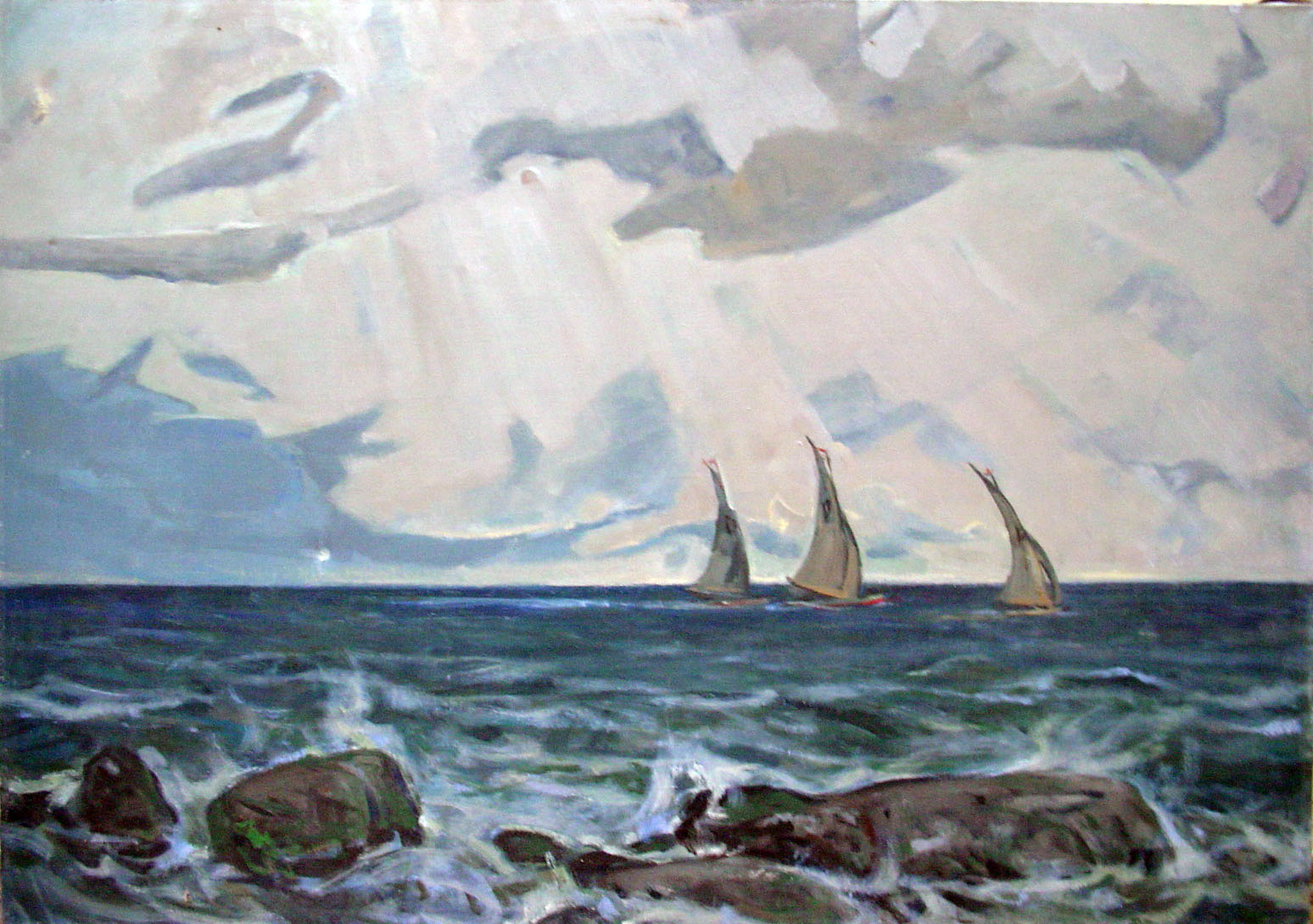 Two paintings with maritime themes Popova LG Both oil on canvas, 100h130 see Price $ 4000 for each.  Popova Lyudmila Gennadiivna. Born 29.06.1930, in Odessa, Ukraine. In 1954 graduated from Odessa State Art College. M. Grekov. Teachers in the specialty - M. Zhuk, P. Kanovsky, V. Puteyko. Graph. Member of the National Union of Artists of Ukraine since 1970. |