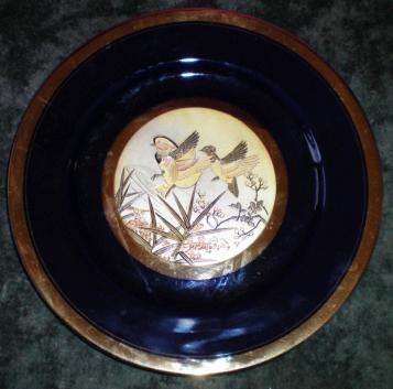 Диаметр тарелки-26см; диаметр гравированной металлическов вставки с позолотой и серебрением-11,5 см.