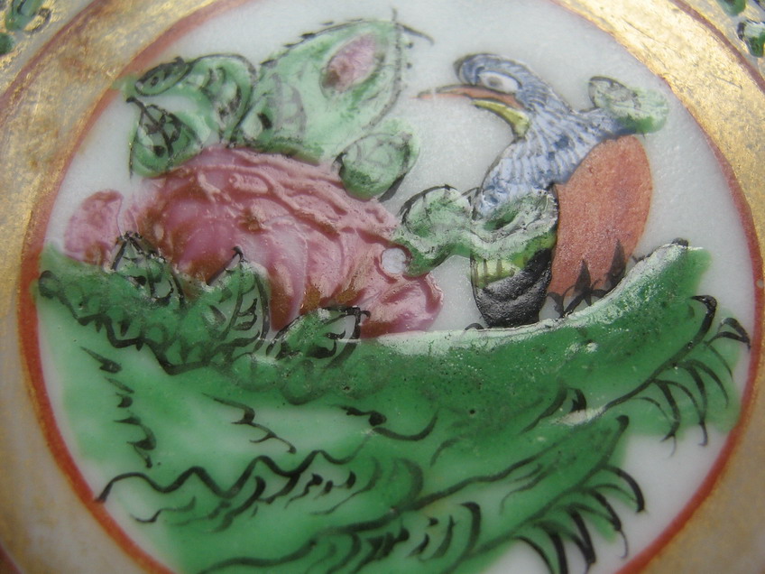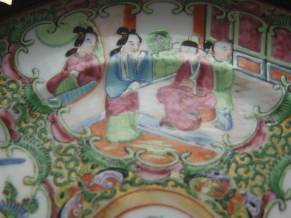 Принесли вот такую тарелку,м.б деталь от вазы. Роспись эмалью по фарфору. Кантон? Рубежная,конец 19 начало 20 века? Ценость её интересует.
